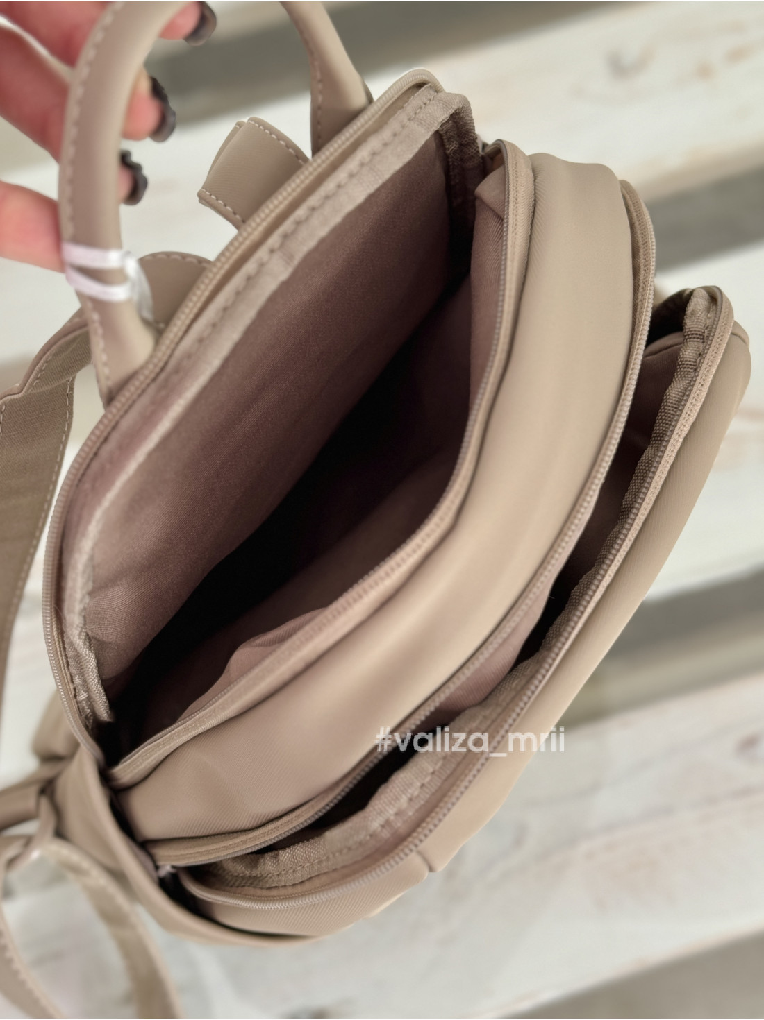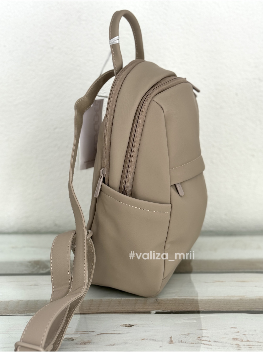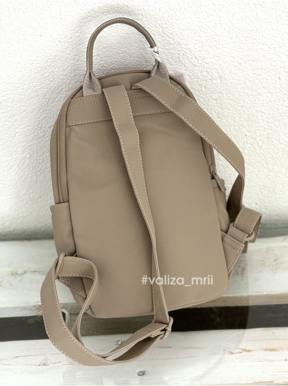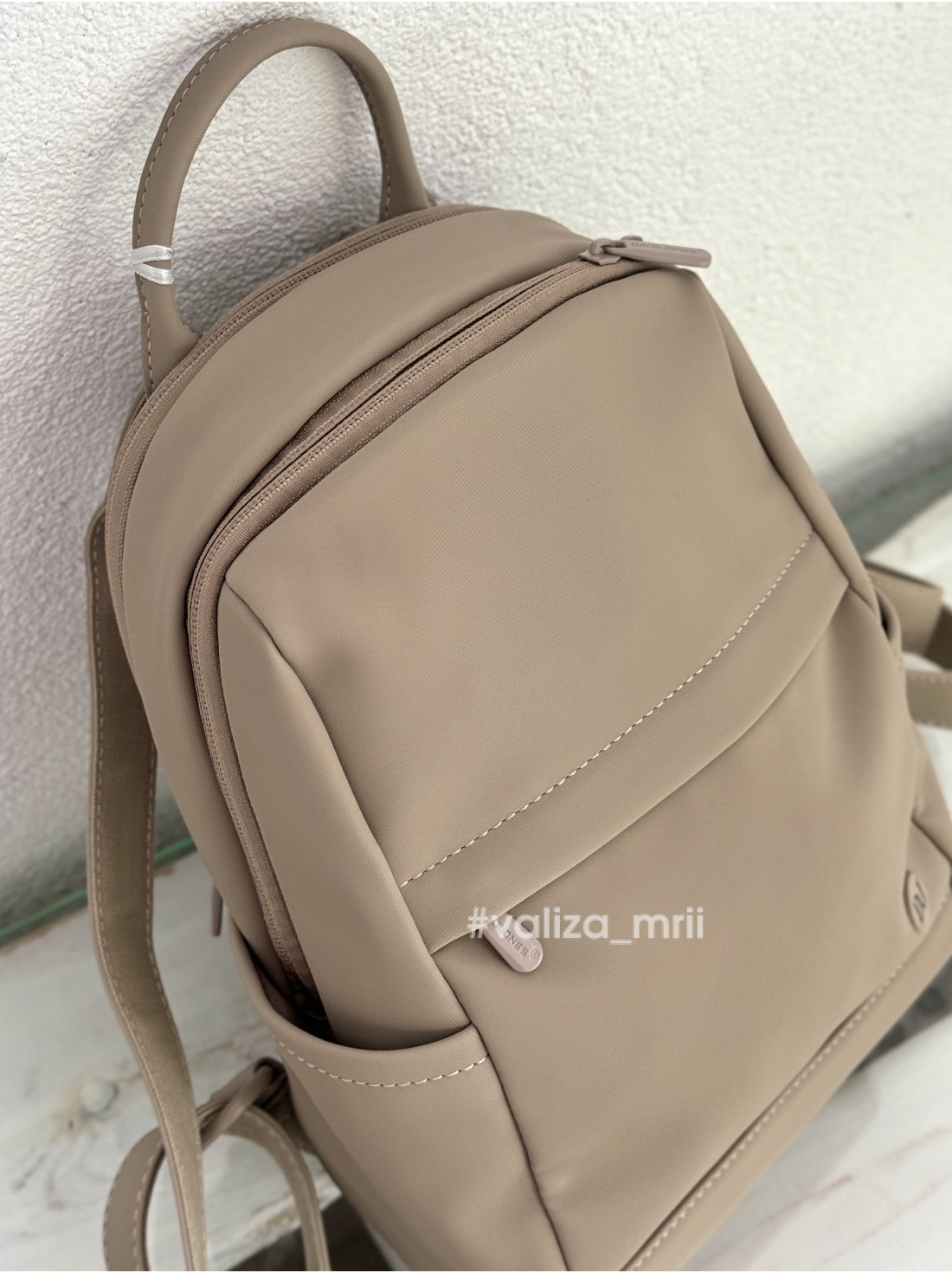 - Дизайн: Современный и минималистичный дизайн в нежном бежево-сером (тауп) оттенке позволяет легко сочетать рюкзак с любой одеждой. Строгие линии и отсутствие лишних деталей подчёркивают элегантность.