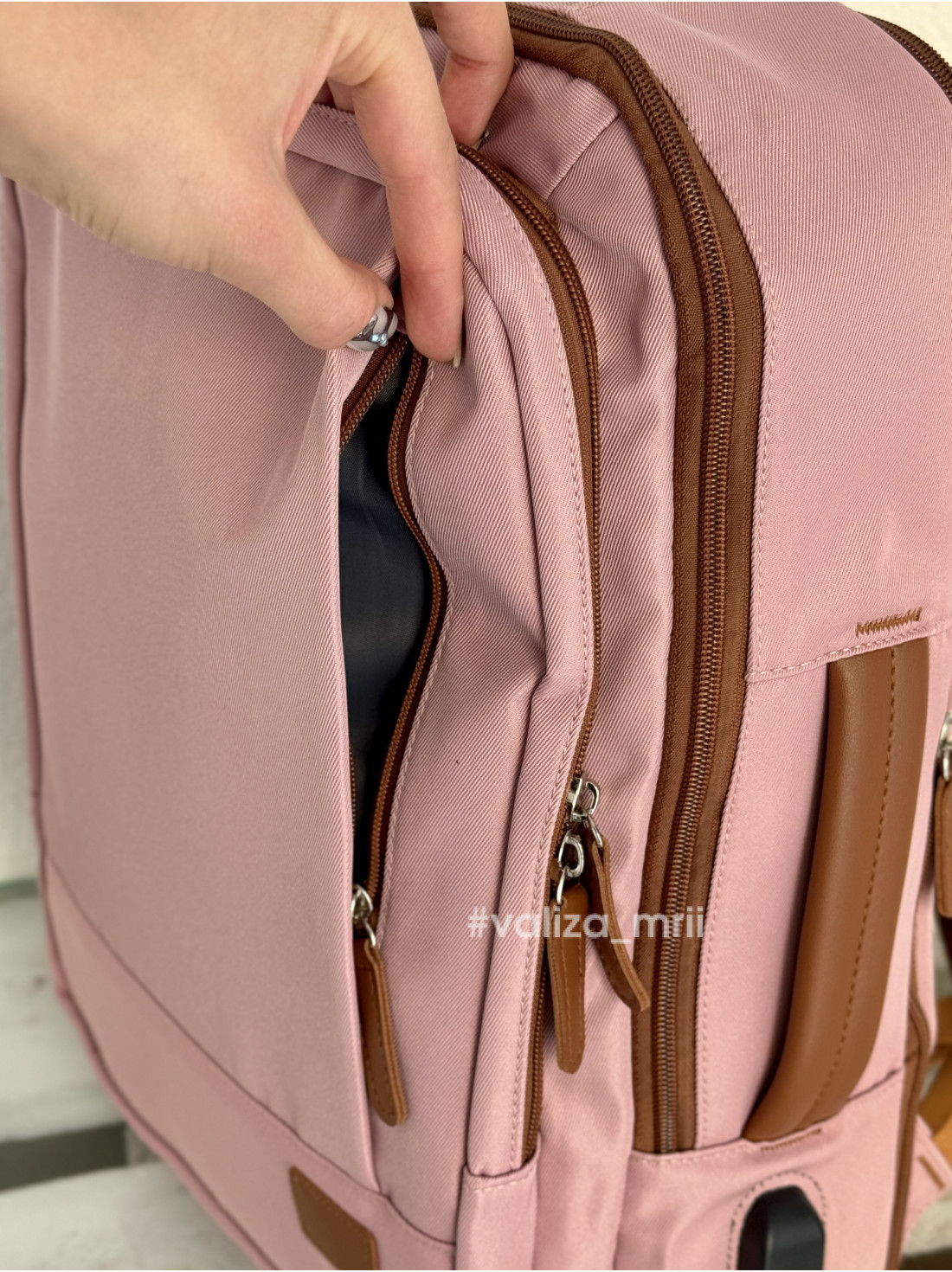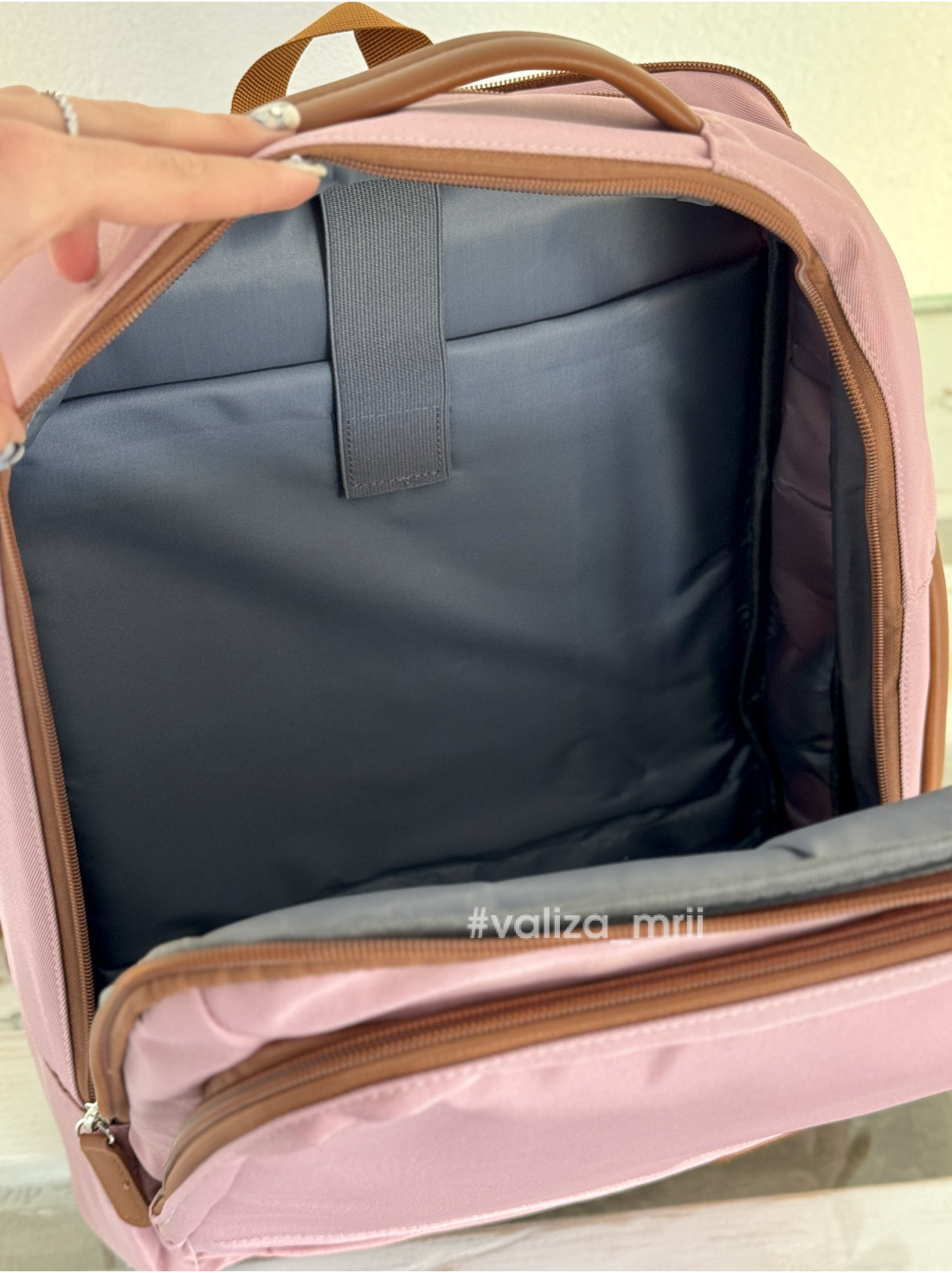 В переднем отделении есть водонепроницаемый карман, где удобно хранить документы или мелкие вещи. Особую привлекательность рюкзака придает гармоничное сочетание цветов и стильная коричневая фурнитура, выглядящая современно и элегантно.