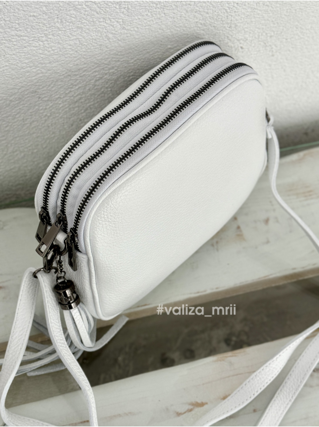 Изготовлена сумочка из натуральной кожи и сзади имеет карманчик на молнии.