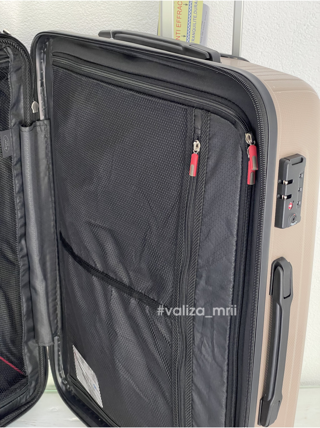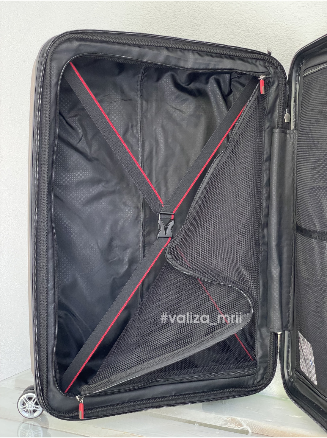 - Всередині має два відділи, які повністю закриваються, щільний матеріал підкладки, є додаткові карманчики, та ремінь фіксації.