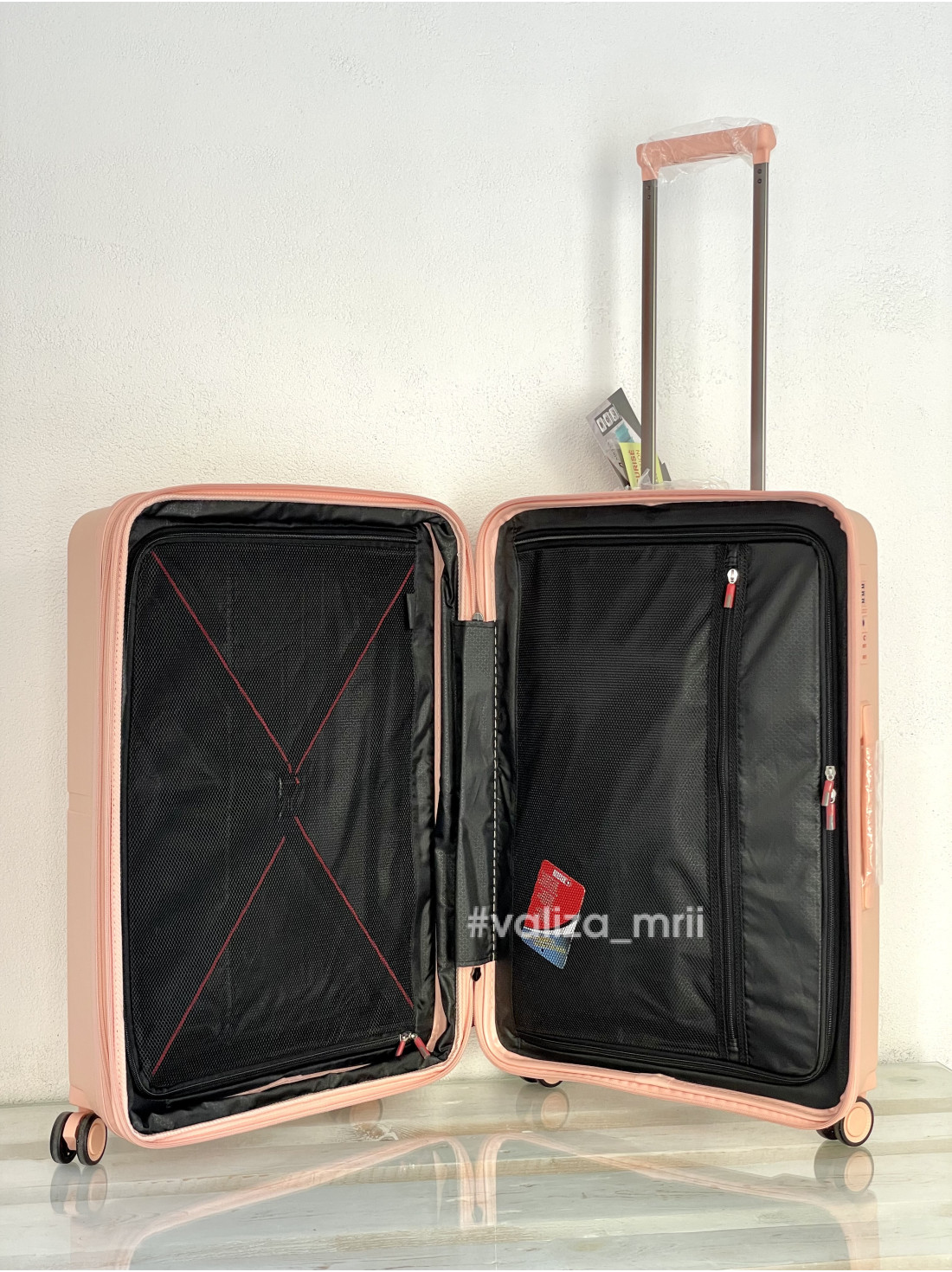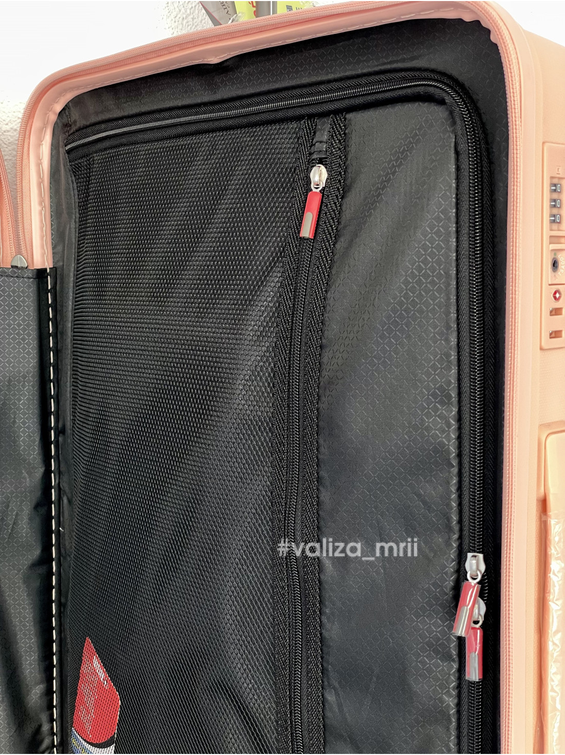 Корпус зроблений з еластичного та м‘якого пластику - поліпропілен, який при ударах не тріскається, саме тому ідеально підійде для авіаподорожей! Бездоганна фурнітура - змійки, підкладка, замочки та ручки.