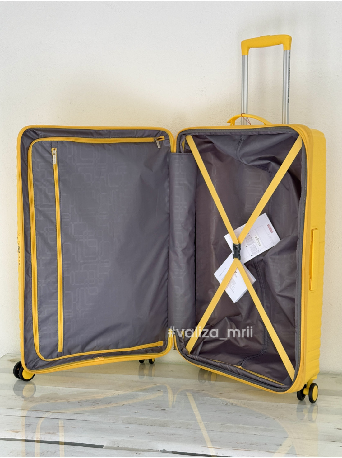 Валіза виготовлена з високотехнологічного поліпропілену. Вона не просто "міцна" - вона еластична. Це означає, що навіть після сильного тиску або ударів корпус повертає свою форму, захищаючи ваші речі.