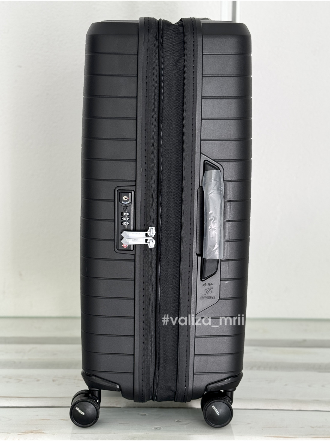 - збоку розташовані опорні ніжки для стійкості валізи в горизонтальному положенні та захисту її від забруднення (малою валізою пластикові ніжки відсутні);