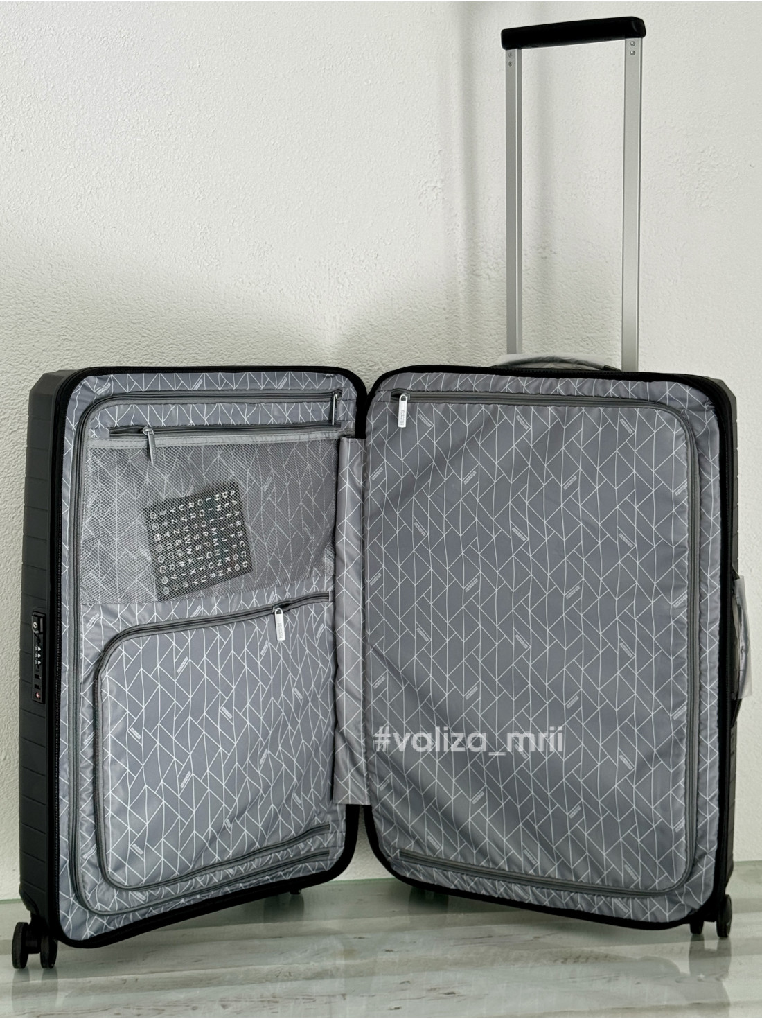 - друге відділення з фіксуючими ременями для одягу закривається текстильною перегородкою на блискавці, на якій розташовані дві кишені на блискавках і маленька еластична кишеня для GPS-трекера (у малій валізі кишеня для GPS-трекера