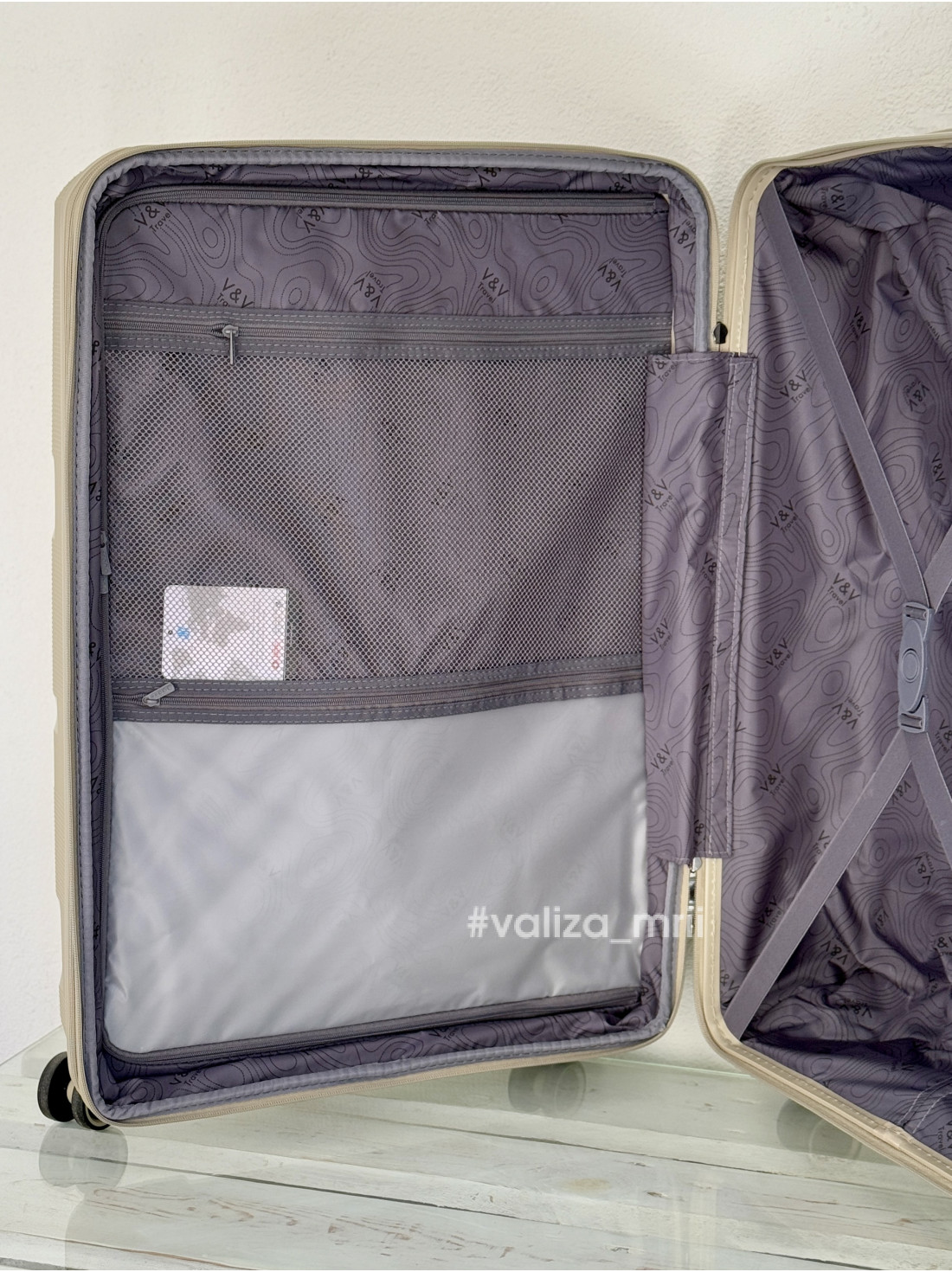 - Усередині дві секції, одна з фіксуючим ременем і тканиною на блискавці, друга з місткою кишенею, на блискавці;