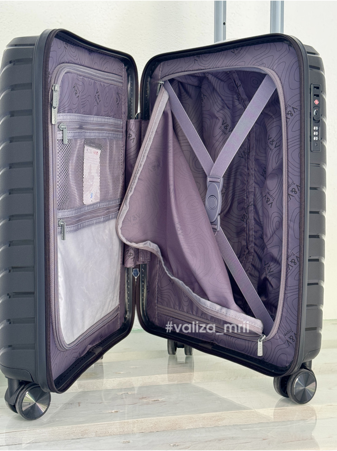 Валіза з поліпропілену - ручна поклажа - V&V Travel 8025 - чорний