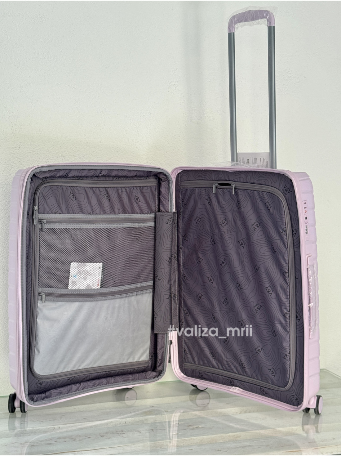 - Усередині дві секції, одна з фіксуючим ременем, друга з місткою кишенею, на блискавці;