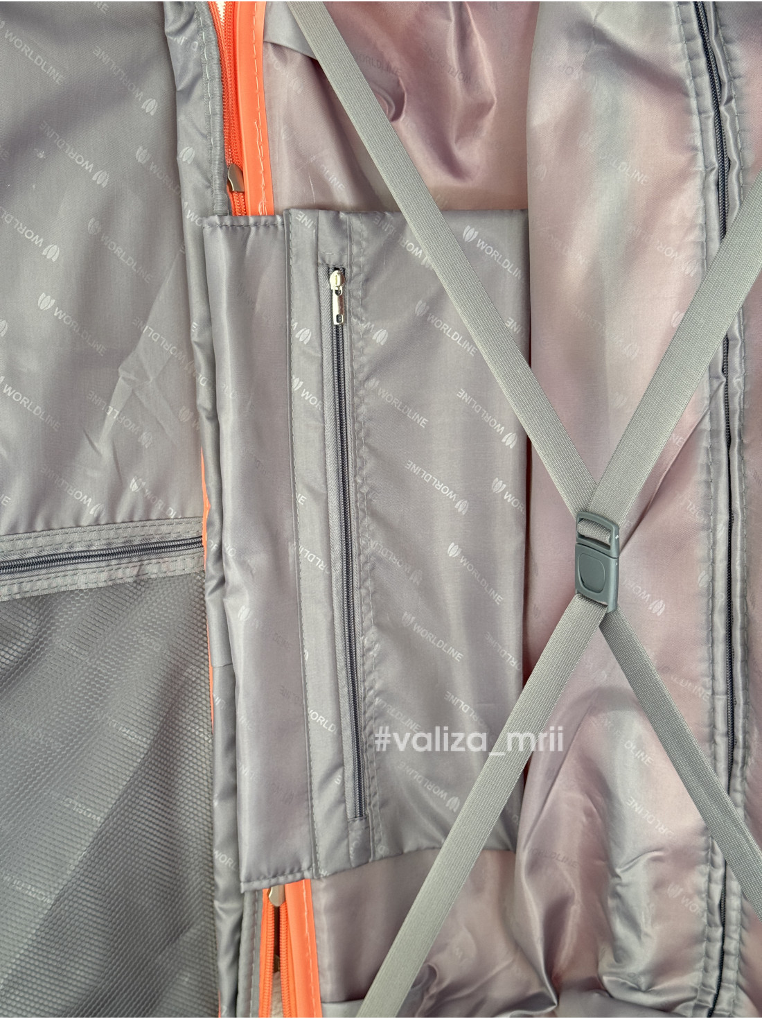 - Всередині валіза має два відділення: одне з ременем для фіксації речей, інше закривається на блискавку та має карманчик.