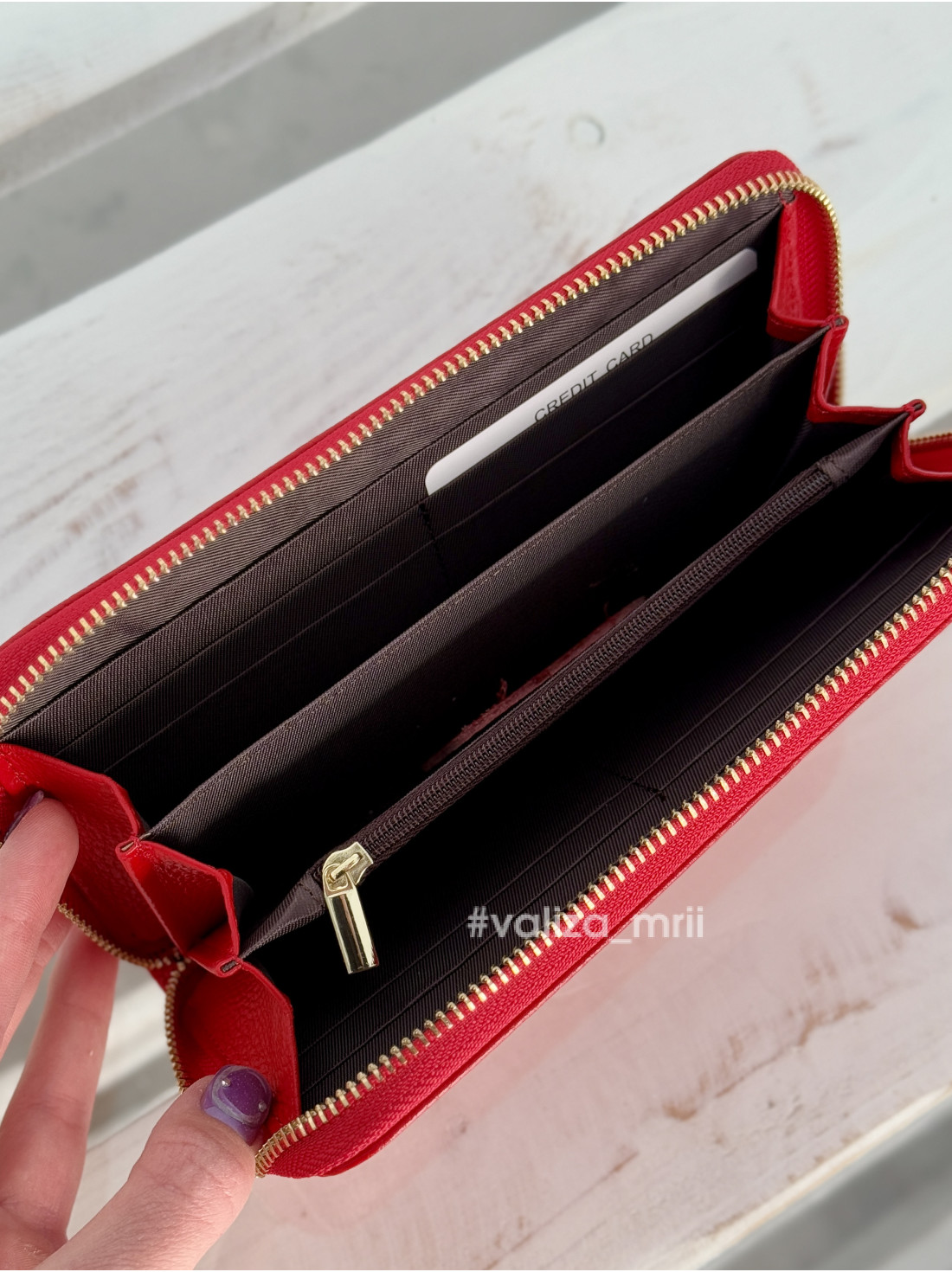 Дуже зручний гаманець, на пряму купюру, має золоту фурнітуру та високу якість пошиття, вміститься в будь-яку сумочку.