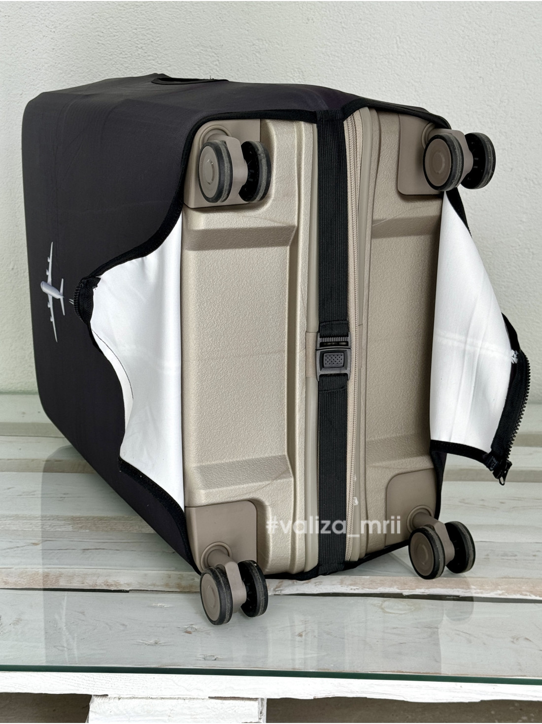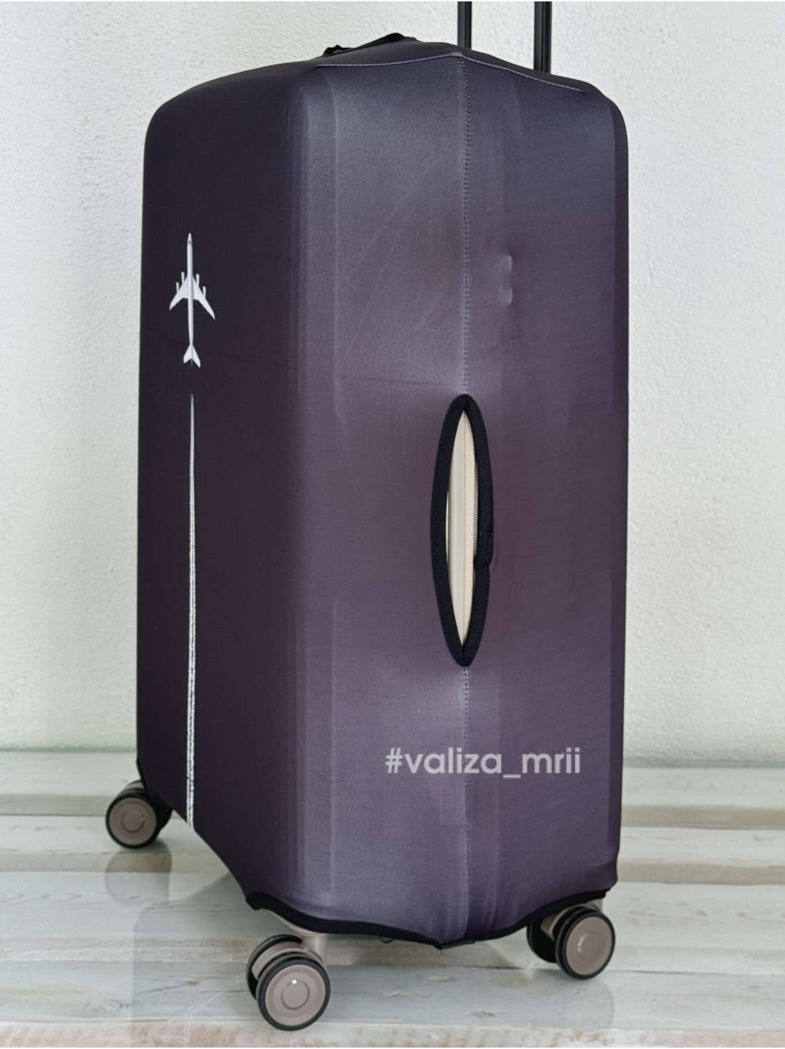 Має вирізи для ручок, що забезпечують комфортне користування валізою без зняття чохла. Окрім функціональності, аксесуар також дозволяє персоналізувати валізу та зробити її помітною на стрічці видачі багажу.
