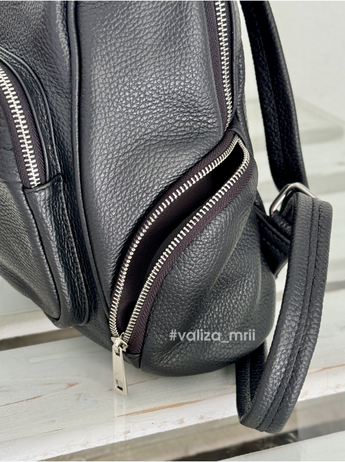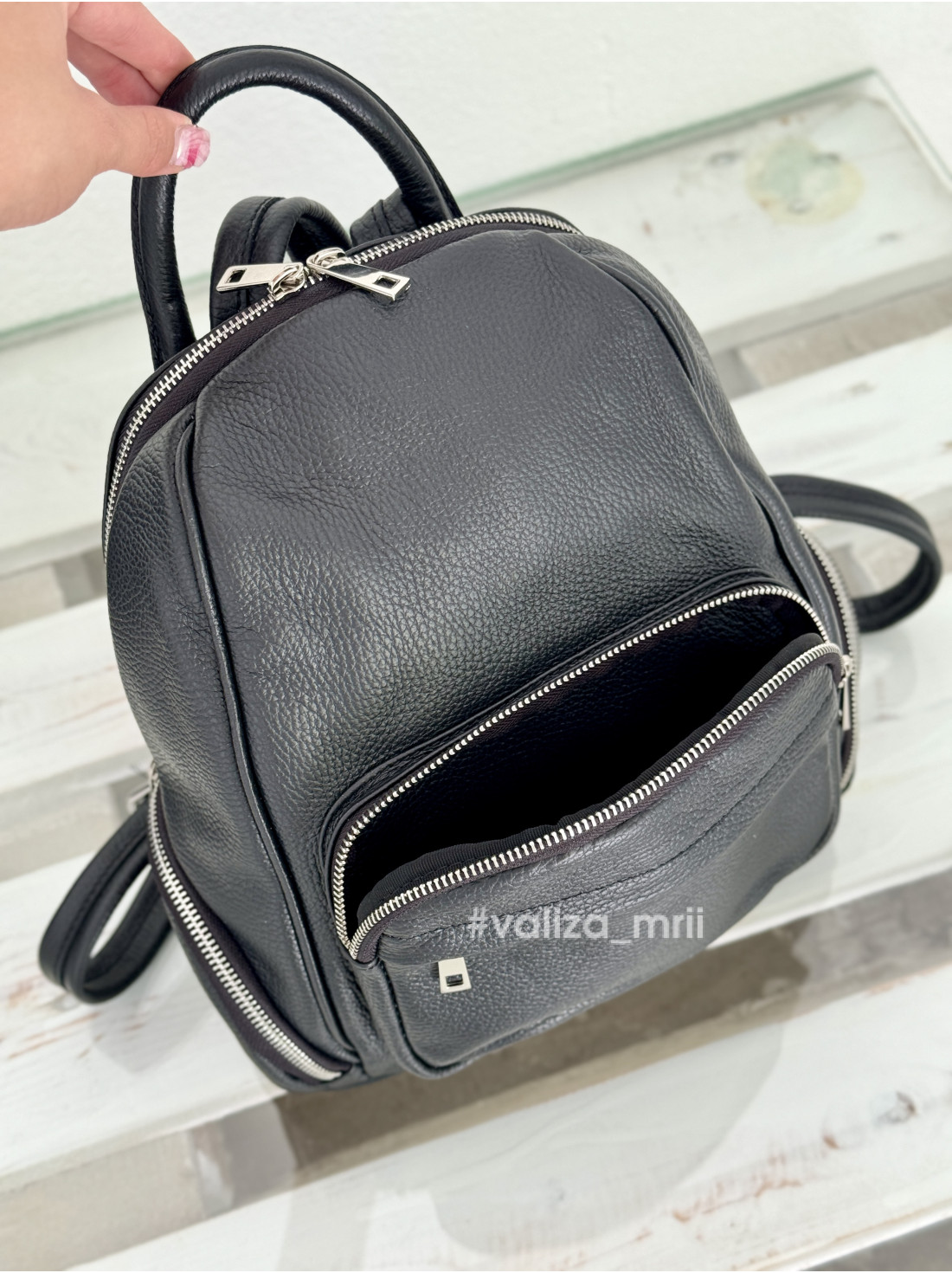 * Натуральна італійська шкіра: Рюкзак виготовлений з м'якої, але міцної натуральної шкіри з приємною на дотик зернистою фактурою, що гарантує довговічність та збереження первісного вигляду протягом тривалого часу.
