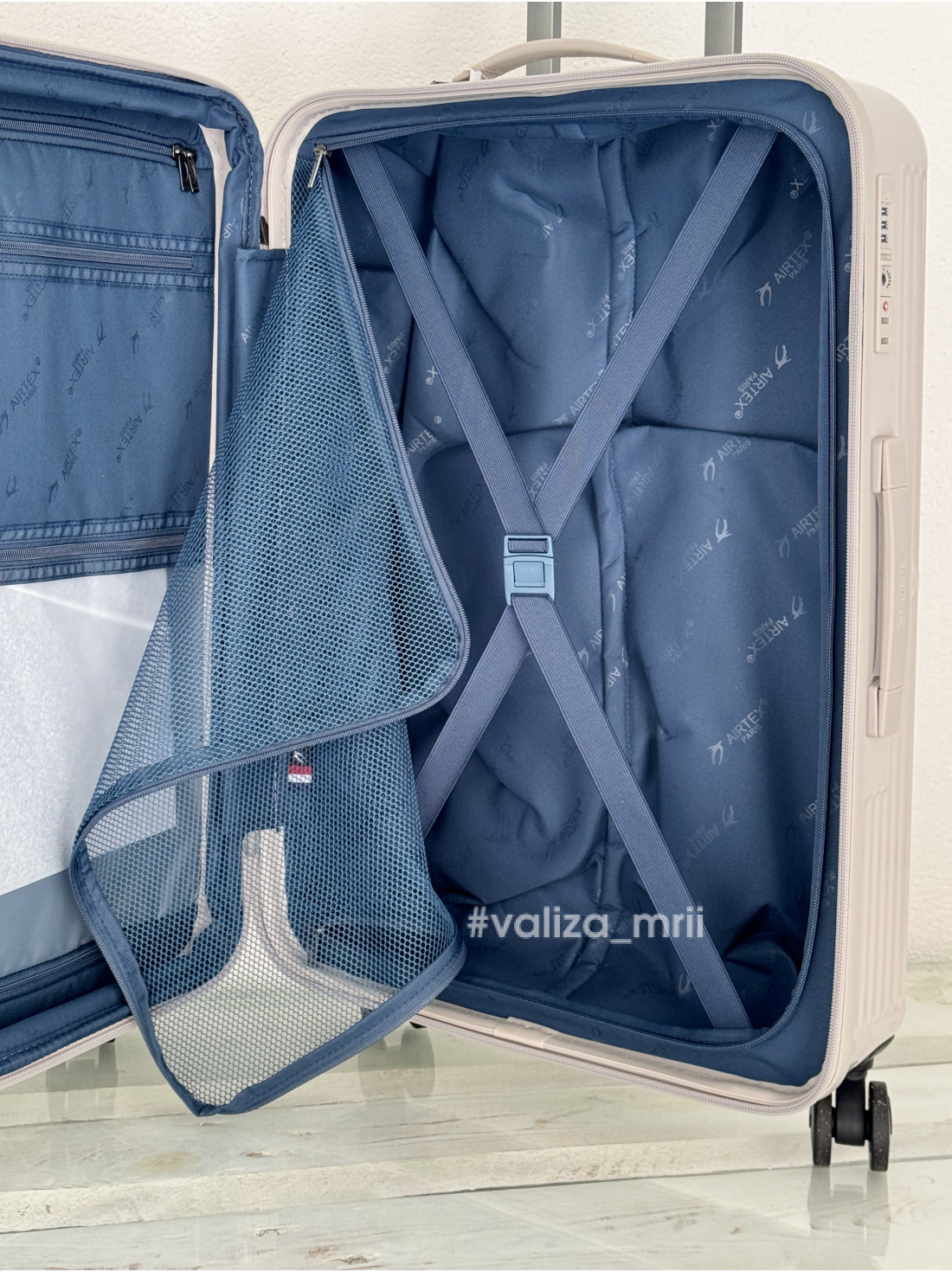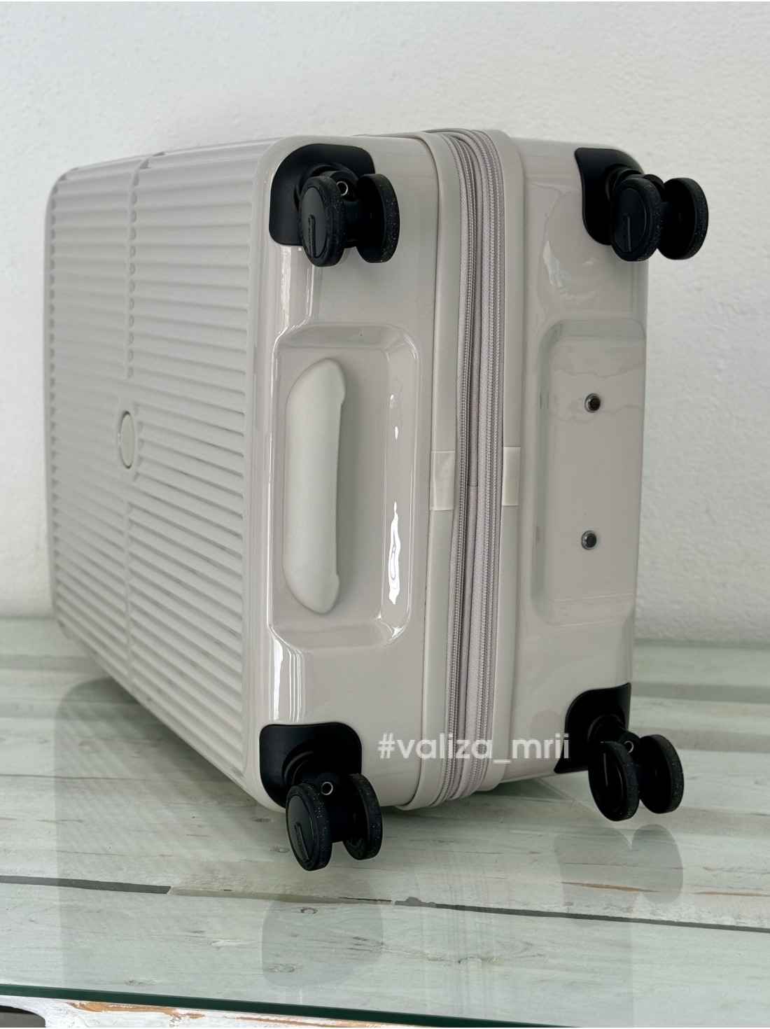 Чемодан изготовлен из 100% поликарбоната – легкого, чрезвычайно прочного и ударопрочного материала, который надежно защищает содержимое и сохраняет идеальный вид даже после интенсивных путешествий.