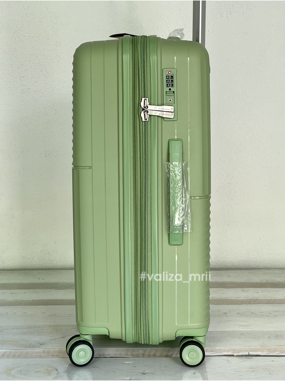 Чемодан из прочного пластика и надежными колесами, эта модель имеет гибкий вид пластика полипропилен, который очень мягкий, поэтому его трудно сломать; колеса полиуретановые на металлическом стержне, приятно и тихо ездят.