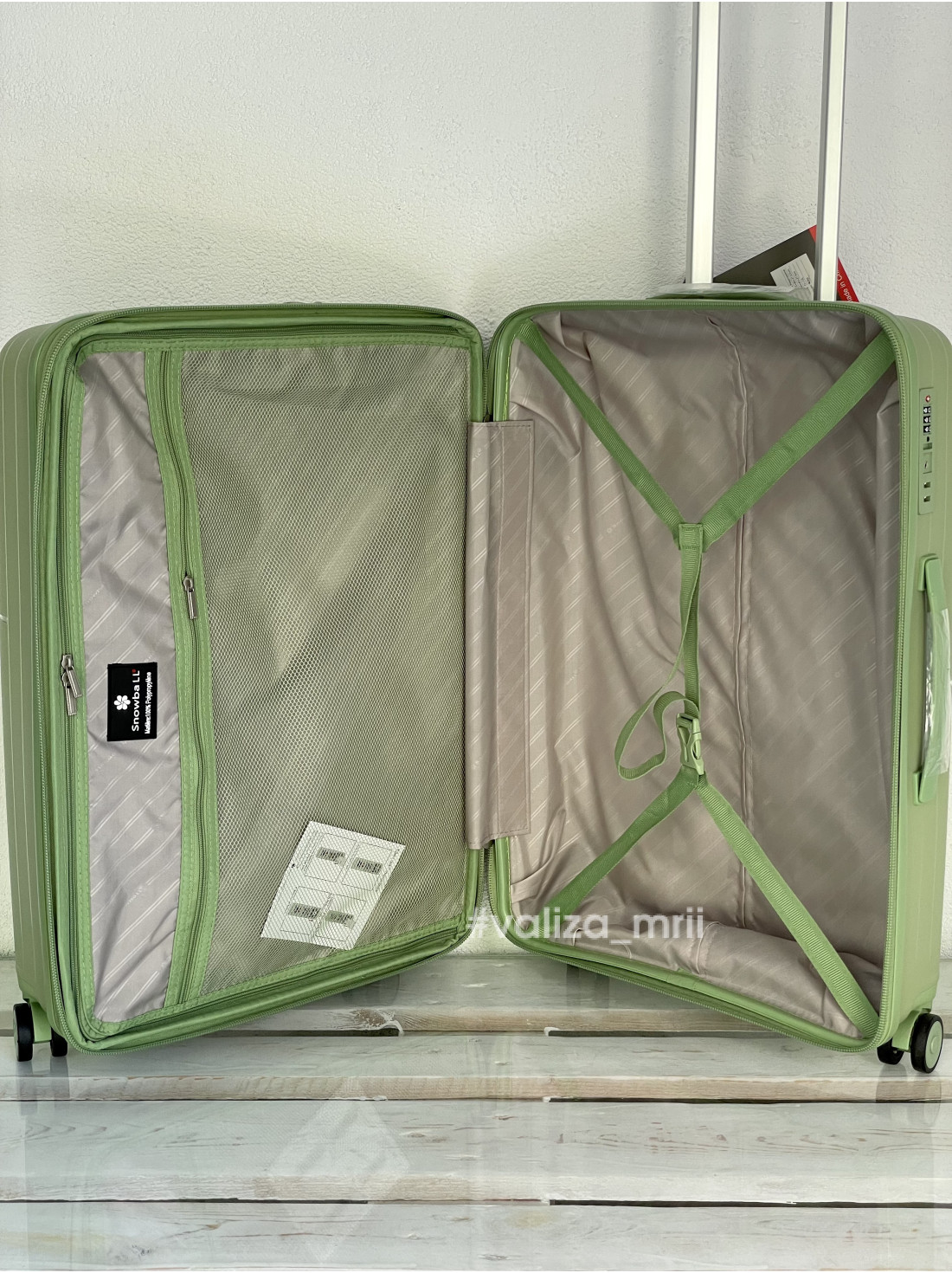 - Внутри чемодан имеет два отделения: одно с ремнем для фиксации вещей, другое закрывается на молнию и имеет карманчик.