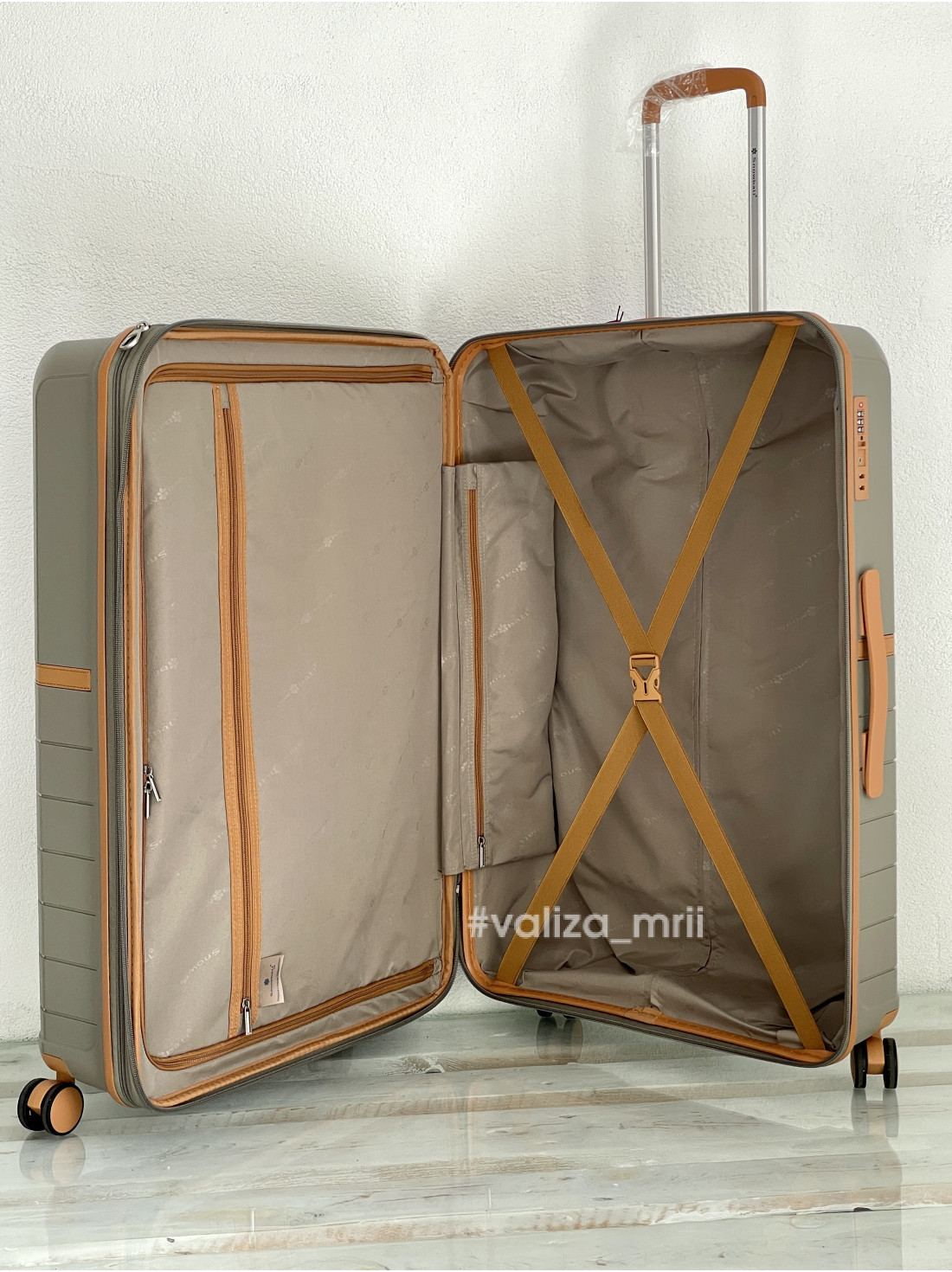 - Внутри чемодан имеет два отделения: одно закрывается на молнию и имеет карман, другое имеет фиксирующий ремень и карман сбоку