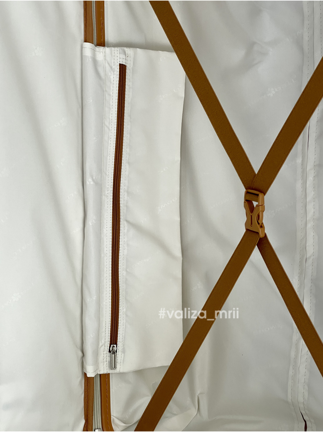 - Внутри чемодан имеет два отделения: одно закрывается на молнию и имеет карман, другое имеет фиксирующий ремень и карман сбоку