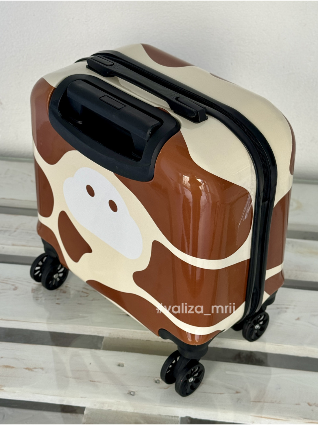 Имеет удобный размер - 43*38*21 (высота указана вместе с колесами), телескопическая ручка регулируется на два положения: общая высота с чемоданом 78 см и 72 см, поэтому идеально подойдет для маленьких деток до 5-6 лет