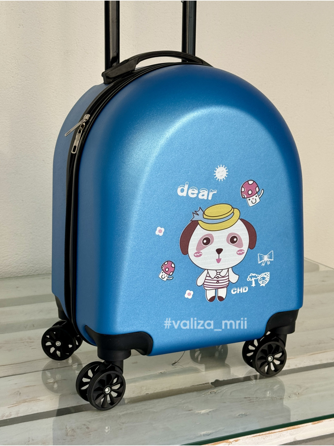 Имеет удобный размер - 46*33*24 (высота указана вместе с колесами), телескопическая ручка регулируется на два положения: общая высота с чемоданом 86 см и 72 см, поэтому идеально подойдет для маленьких деток до 5-6 лет