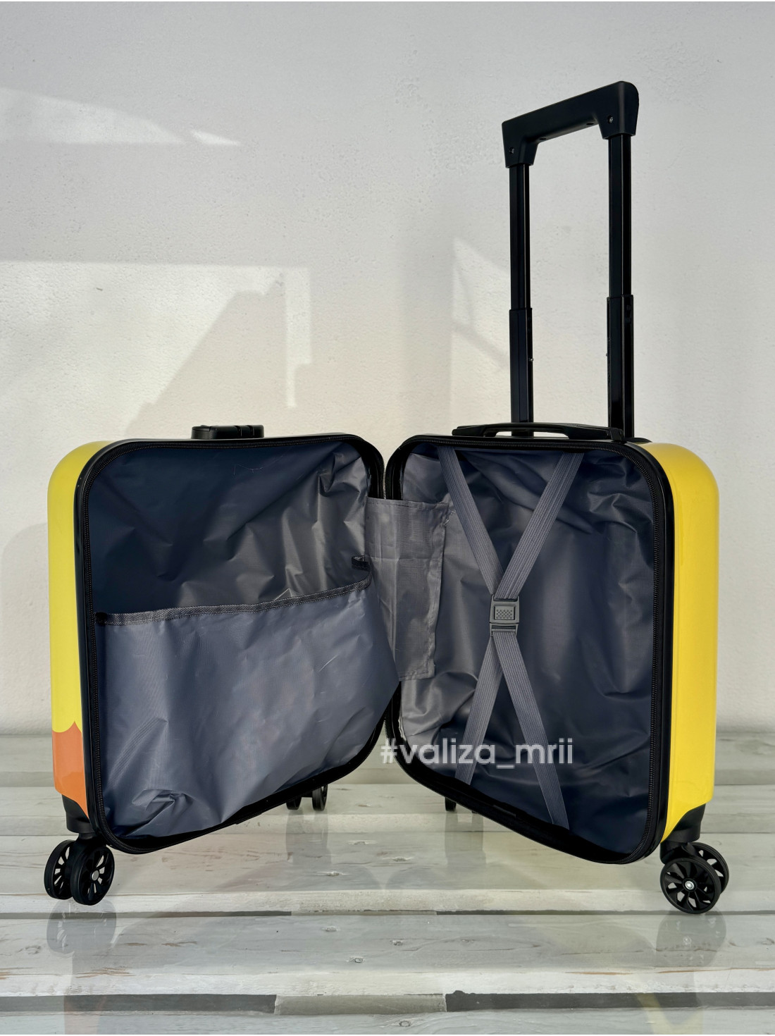 Имеет удобный размер - 45*36*23 (высота указана вместе с колесами), телескопическая ручка регулируется на два положения: общая высота с чемоданом 78 см и 72 см, поэтому идеально подойдет для маленьких деток до 5-6 лет