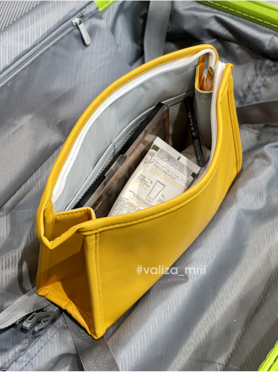 Просторная косметичка, сохраняющая форму в ярком оттенке! Идеальный выбор для косметики и средств гигиены. Нежные на ощупь материалы и удобный размер делают ее практичной и компактной – занимает минимум места в чемодане