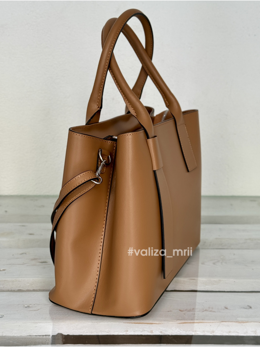 В сумке 2 отделения, есть длинный ремешок в комплекте.