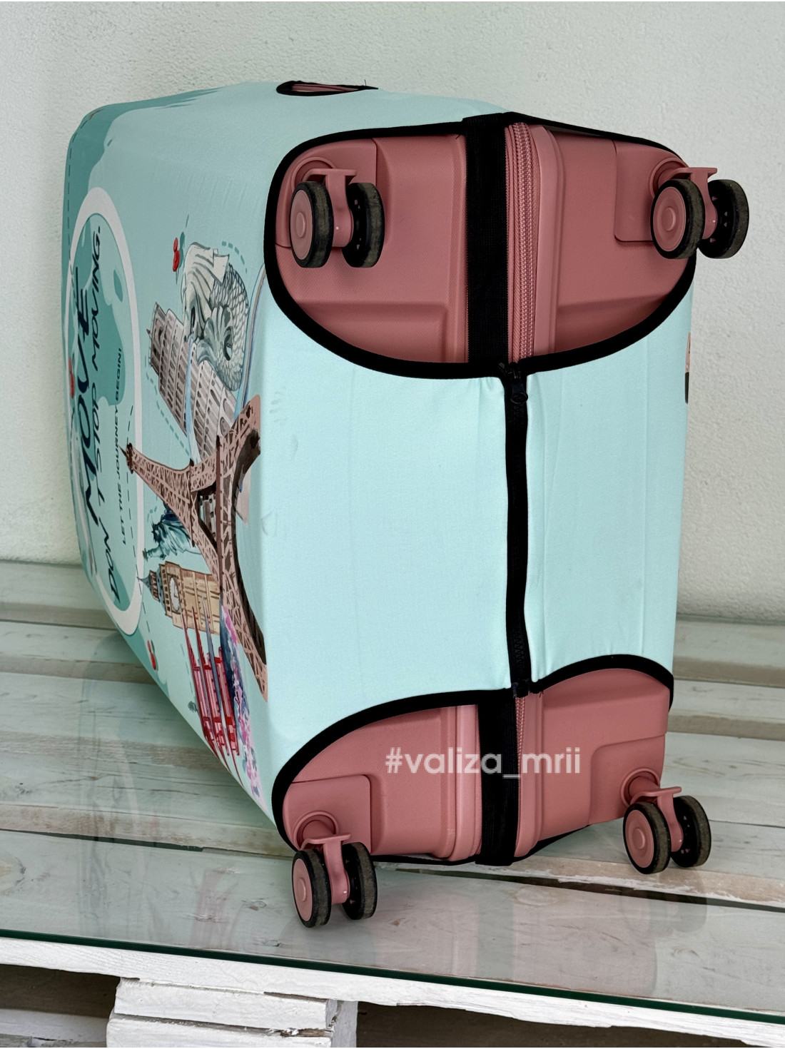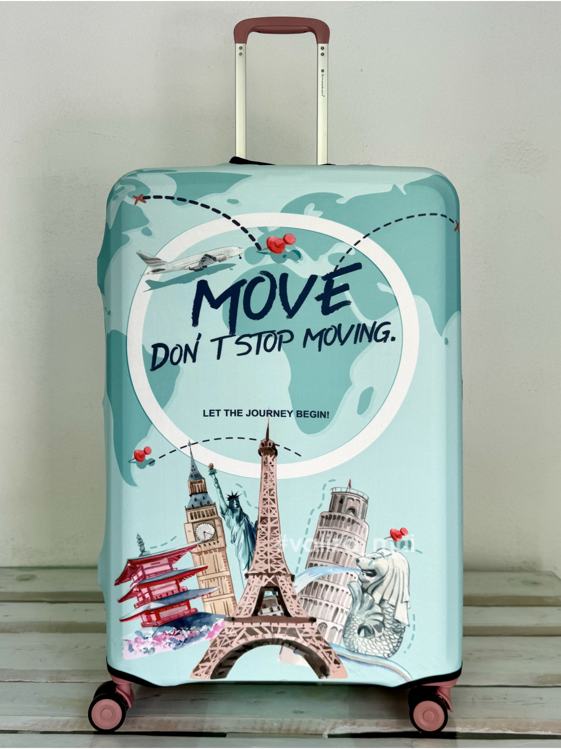 Плотный чехол на чемодан - большой размер - "Города - мятные"