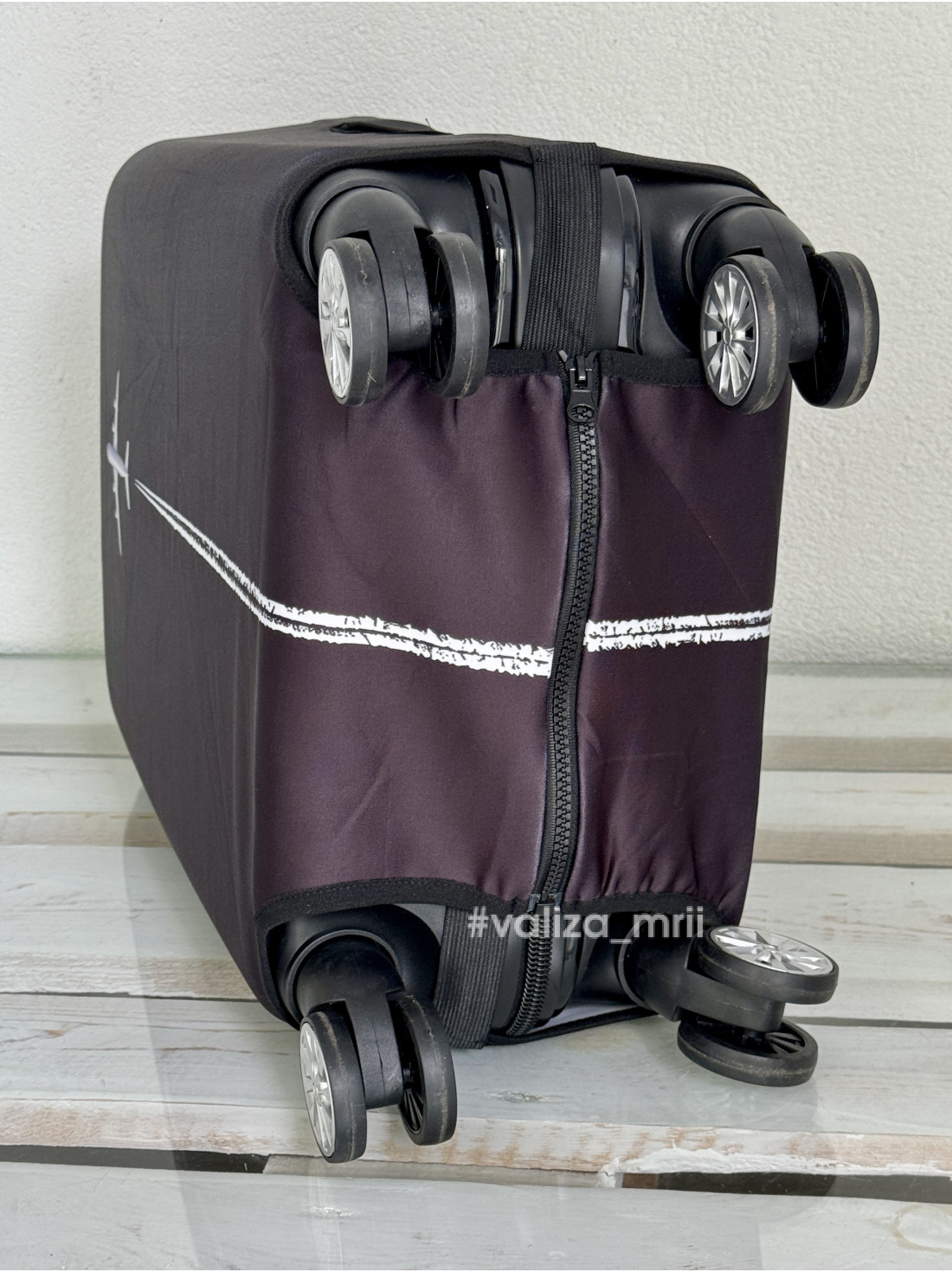 Защитный чехол для чемодана – это практичный аксессуар, который обеспечивает дополнительную защиту вашего багажа во время путешествий. Он изготовлен из прочного, эластичного материала (полиэстер + эластан), плотно облегающего чемодан, защищая его от царапин, пыли, грязи и механических повреждений. Благодаря удобной застежке снизу на молнии чехол легко одевается и надежно фиксируется.