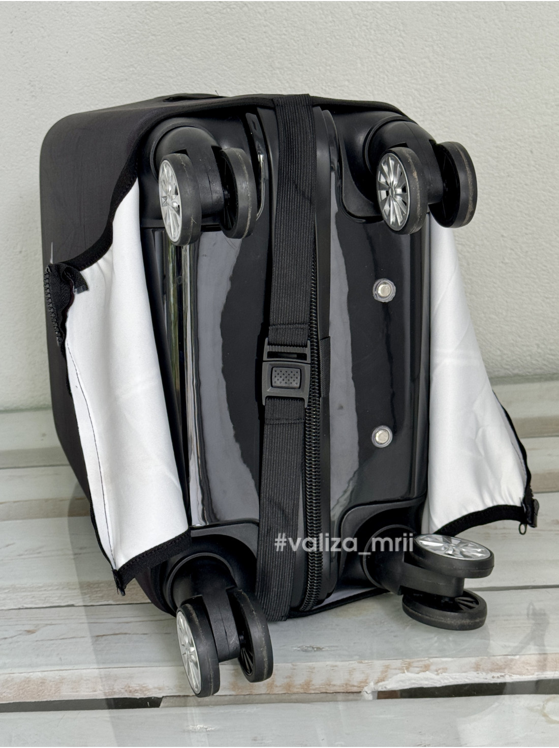 Имеет вырезы для ручек, обеспечивающих комфортное использование чемодана без снятия чехла. Кроме функциональности, аксессуар также позволяет персонализировать чемодан и сделать его заметным на ленте выдачи багажа.