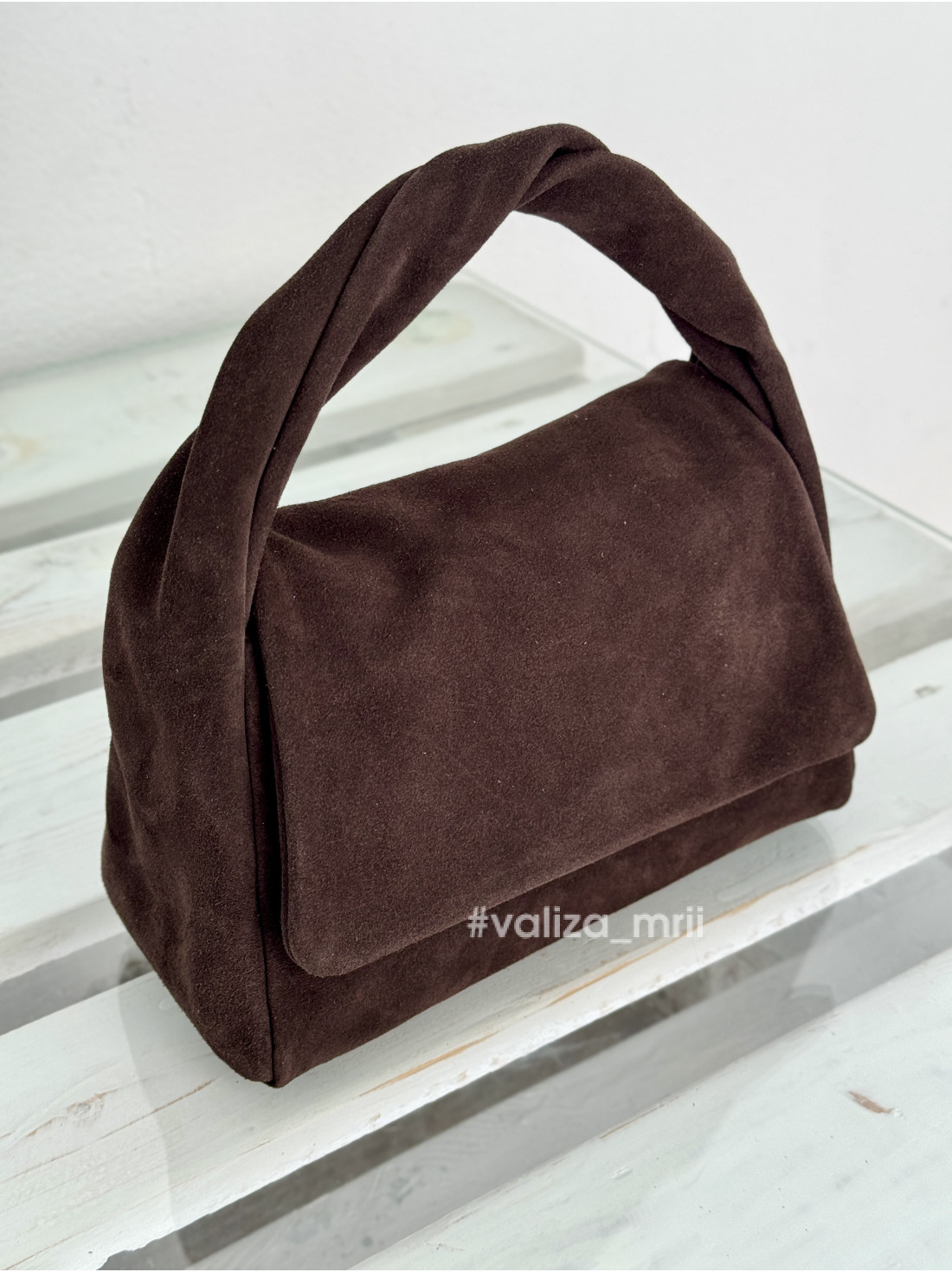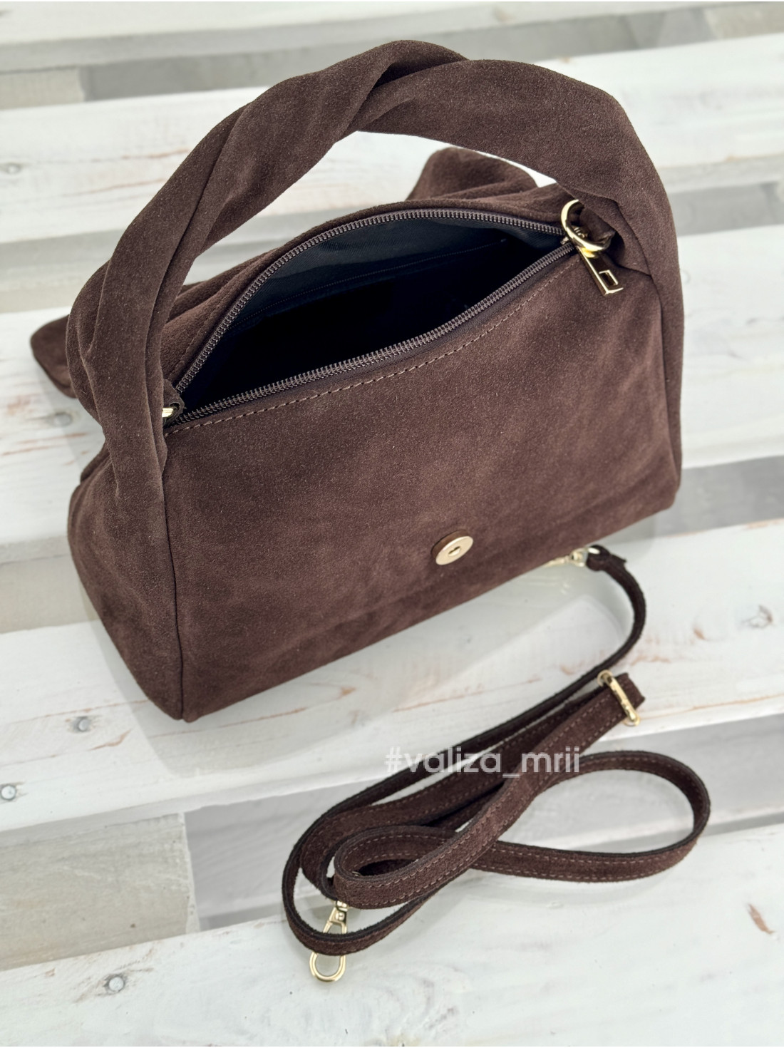 Сумка хобо из натуральной замши Италия - 03812 - шоколад