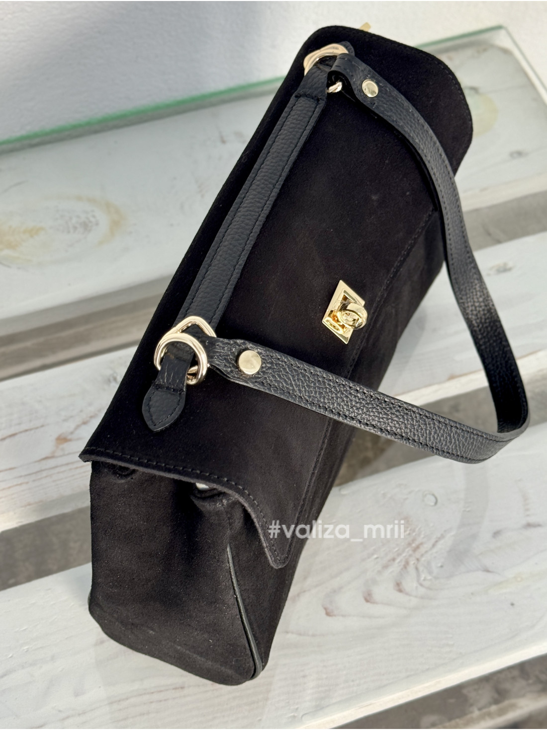 Можна носити на плече з коротким ремінцем, або через плече з довгим, який іде в комплекті - максимальна довжина - 116 см.