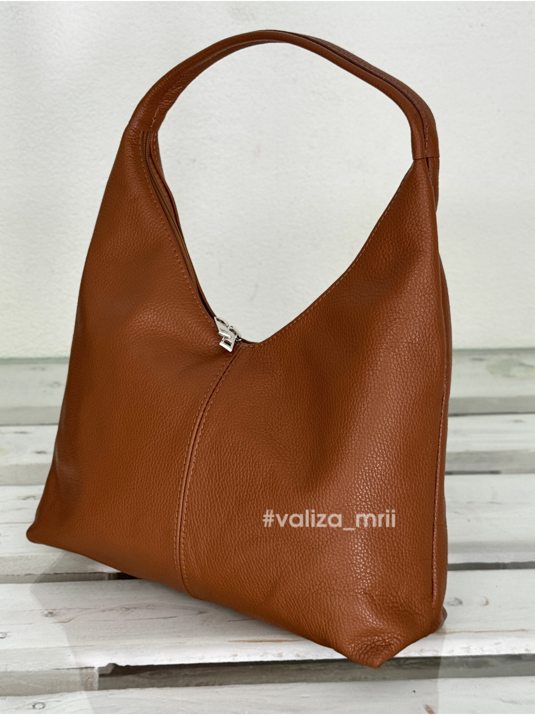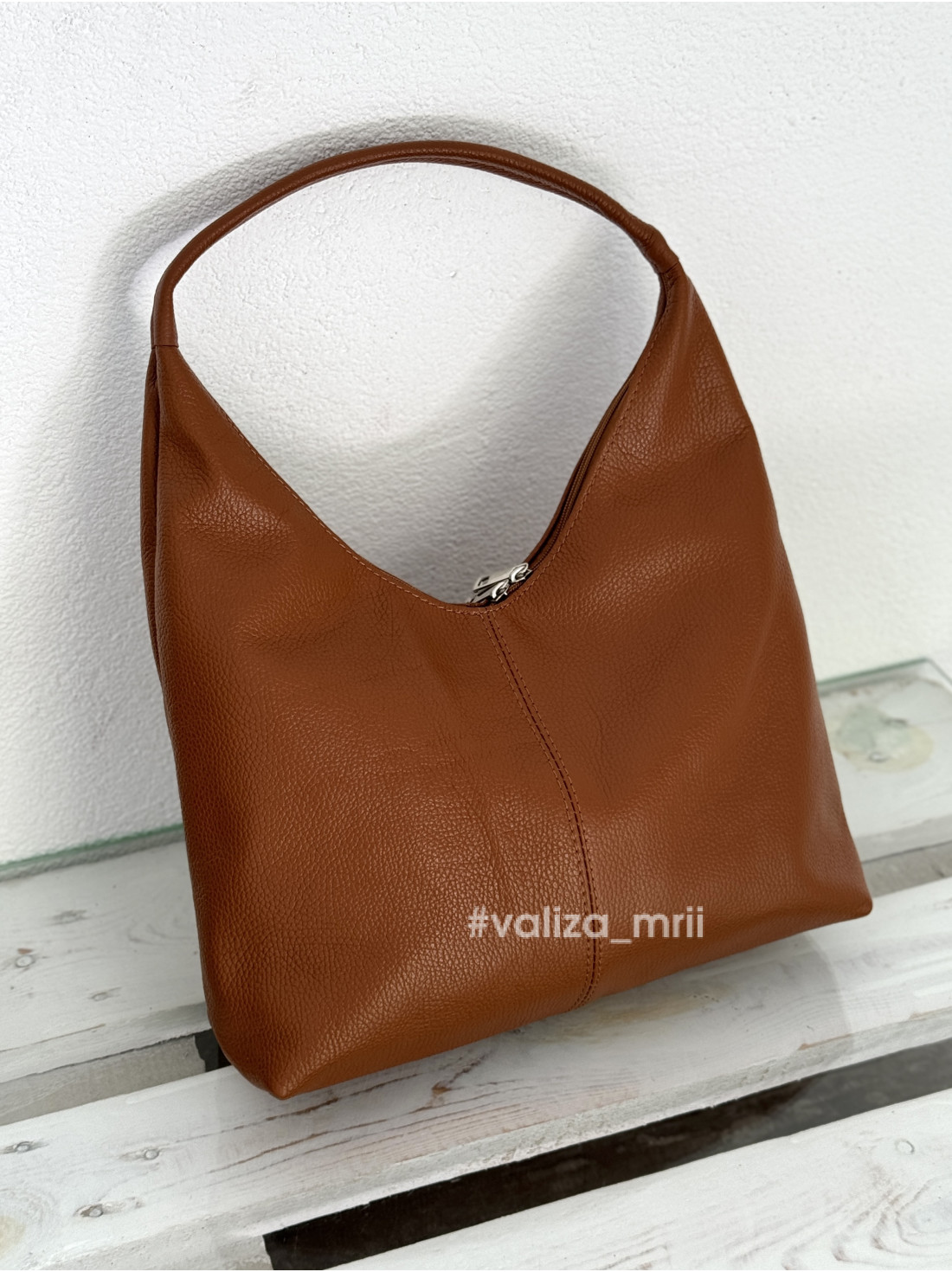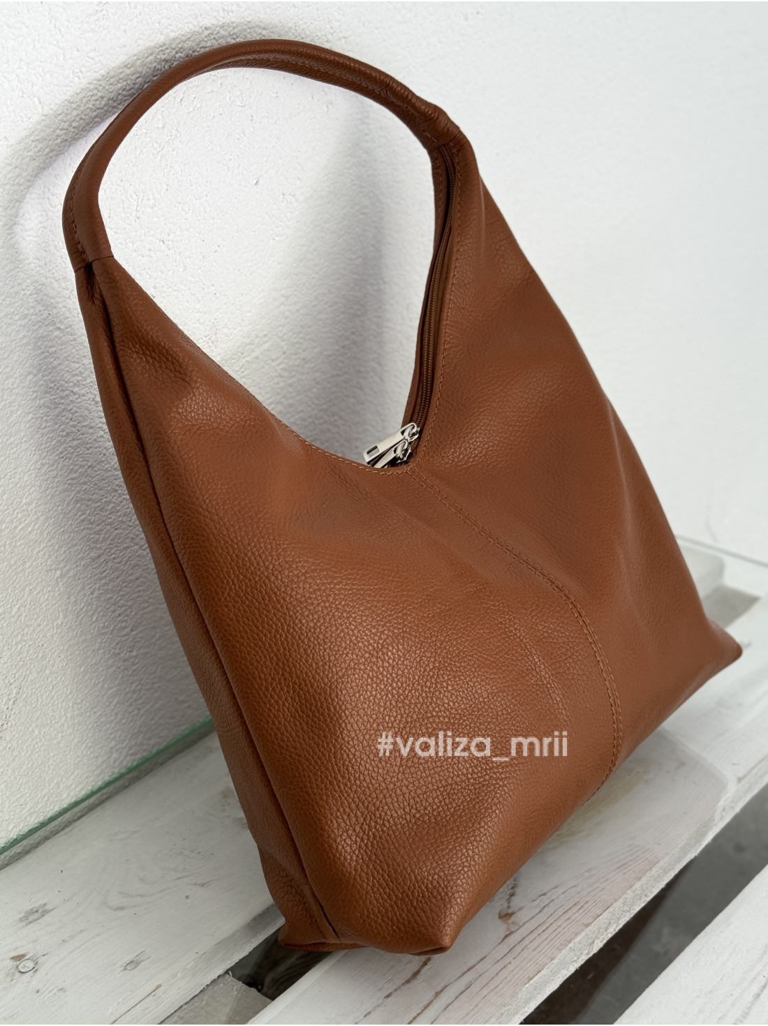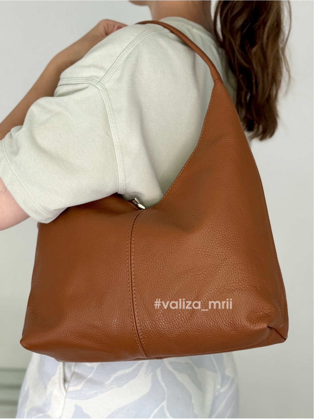 Виготовлена з натуральної шкіри, вона поєднує елегантність і практичність. Характерні риси - мʼяка форма, вигнута лінія зверху у вигляді півмісяця, одна широка ручка, яка дозволяє зручно носити її на плечі.