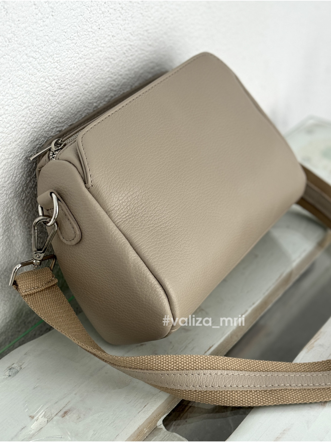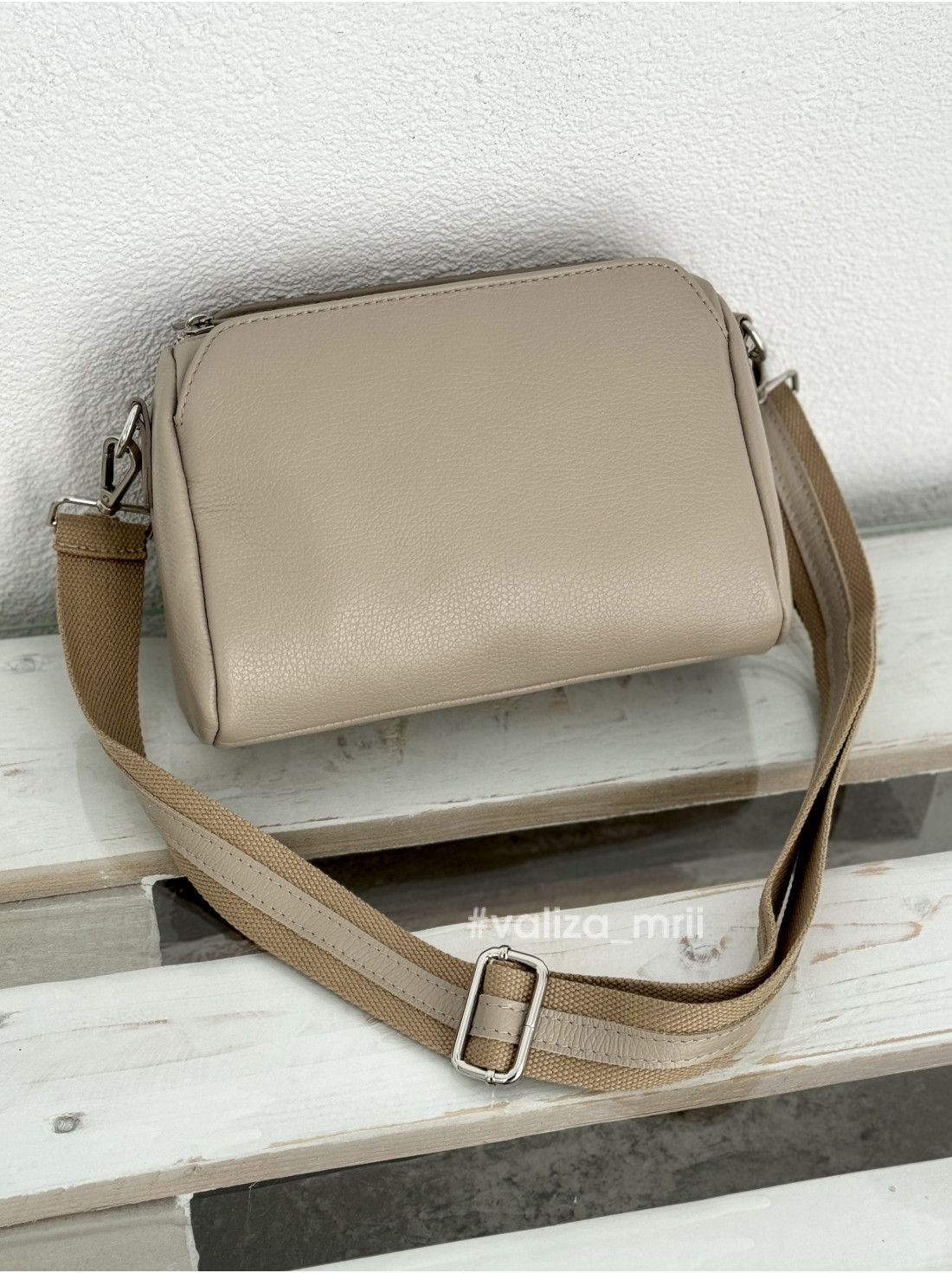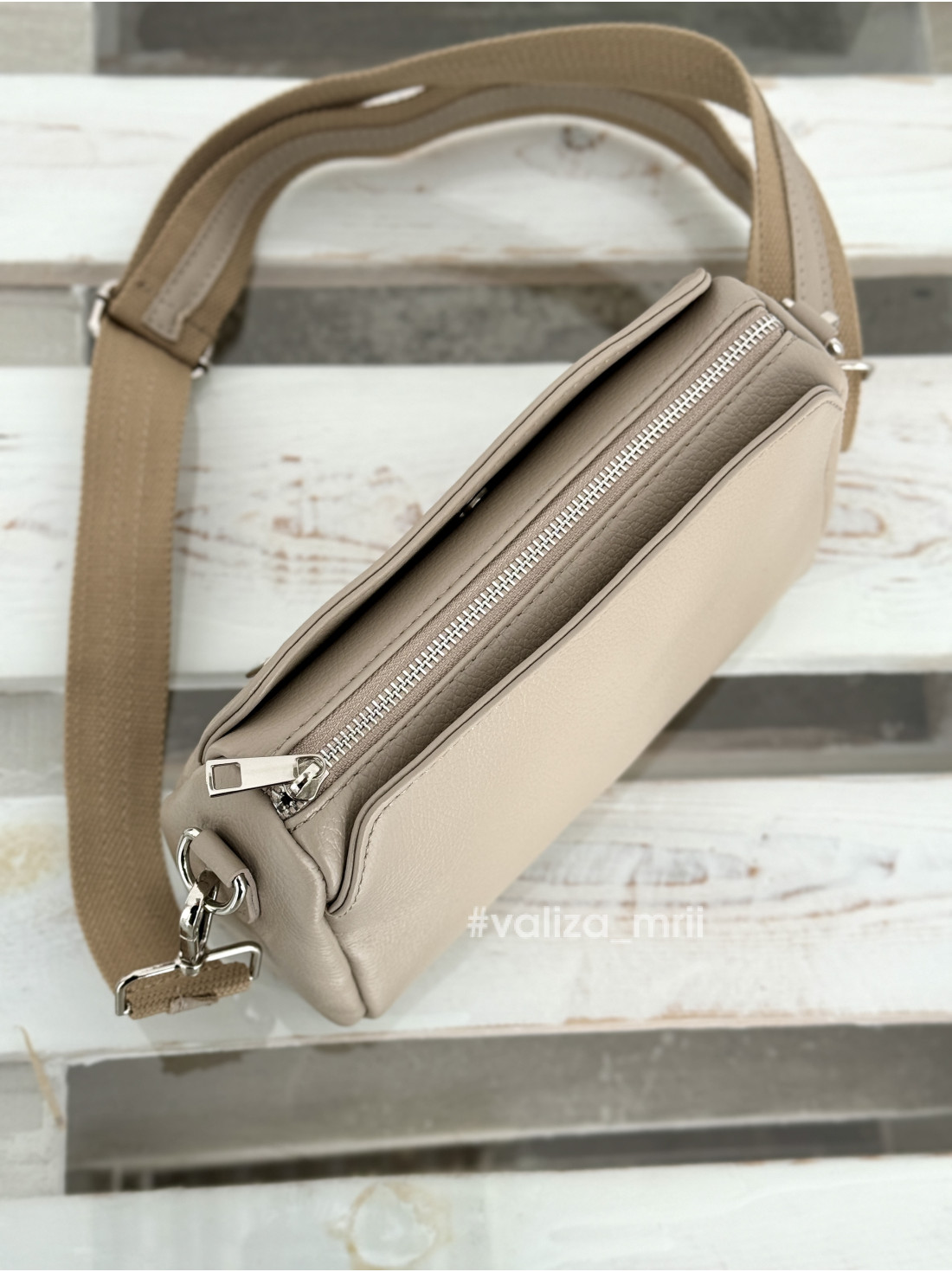 У комплекті йде широкий ремінь з цікавим поєднанням текстилю та шкіри максимальна довжина 120 см.