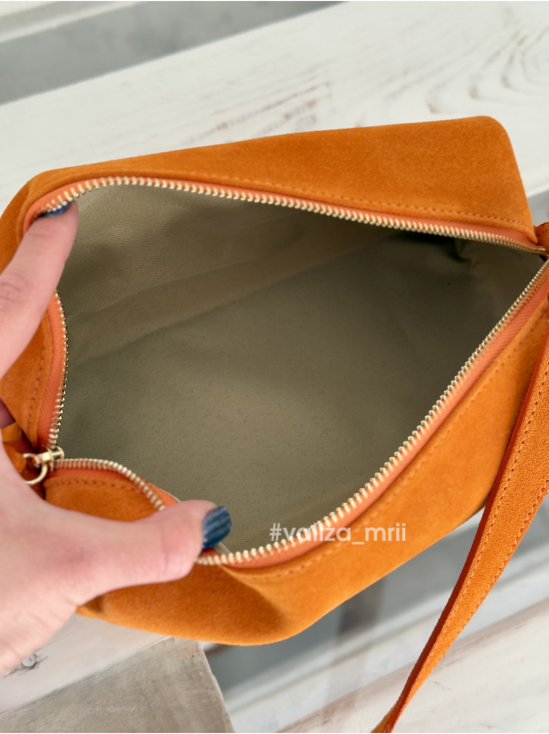 Виконана з преміальної натуральної замші, що має мʼяку бархатисту структуру та глибокий насичений колір.