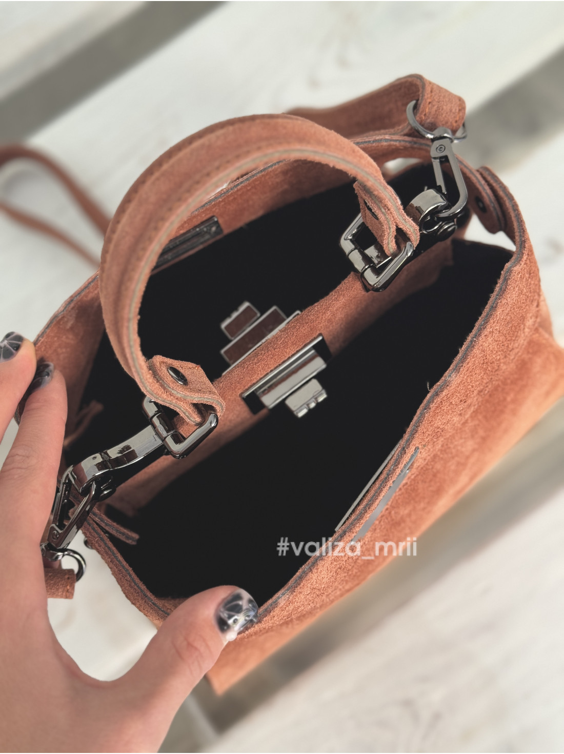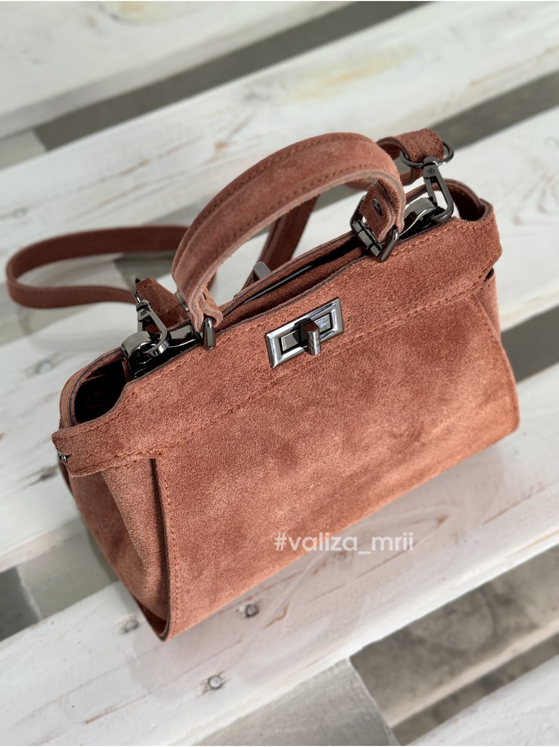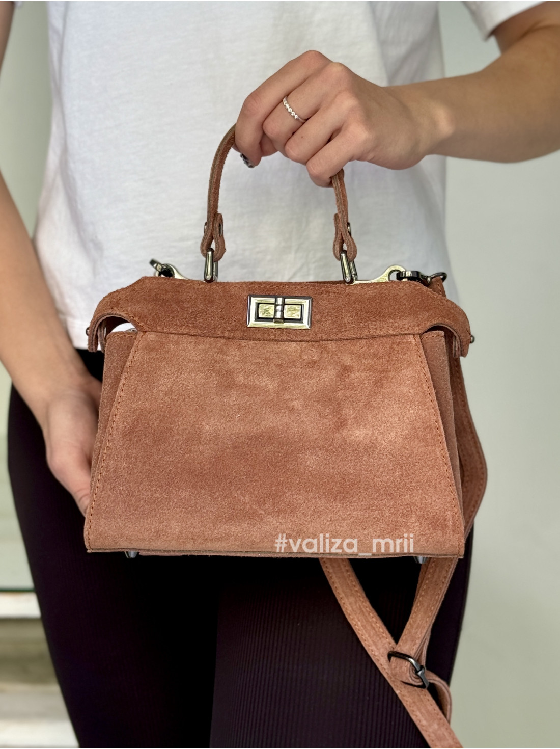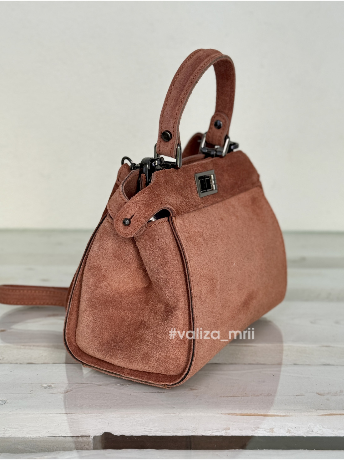 Маленька, тендітна сумка з натуральної замші — ідеальний аксесуар для стильних образів.
