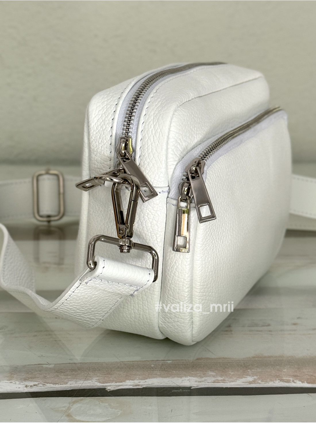 Сумка крос-боді з шкіряним ремінцем - Kira 03283 - білий