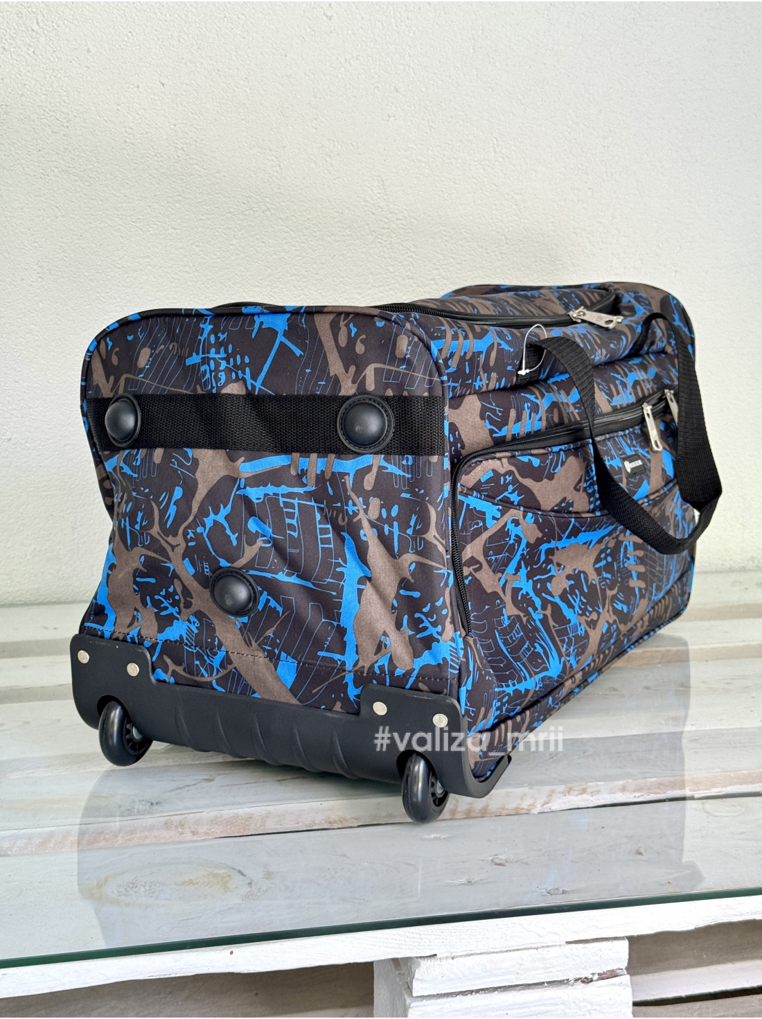 Має два прорезинені колеса, також є додаткові поліуретанові «ніжки» на які ставиться валіза.