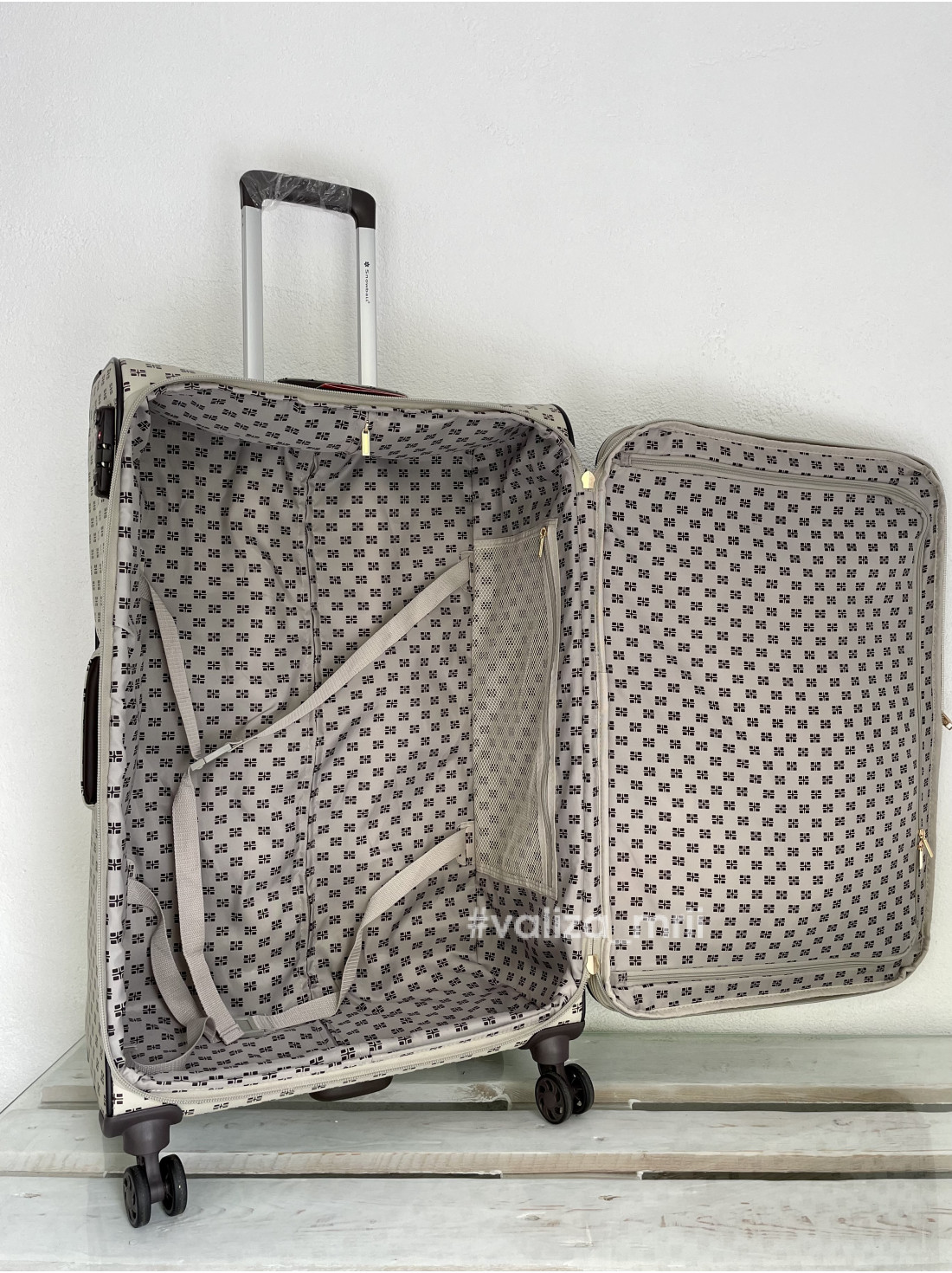- Всередині має одне головне відділення з ременями для фіксації речей, боковий карманчик, також є невелике закрите відділення з іншого боку валізи