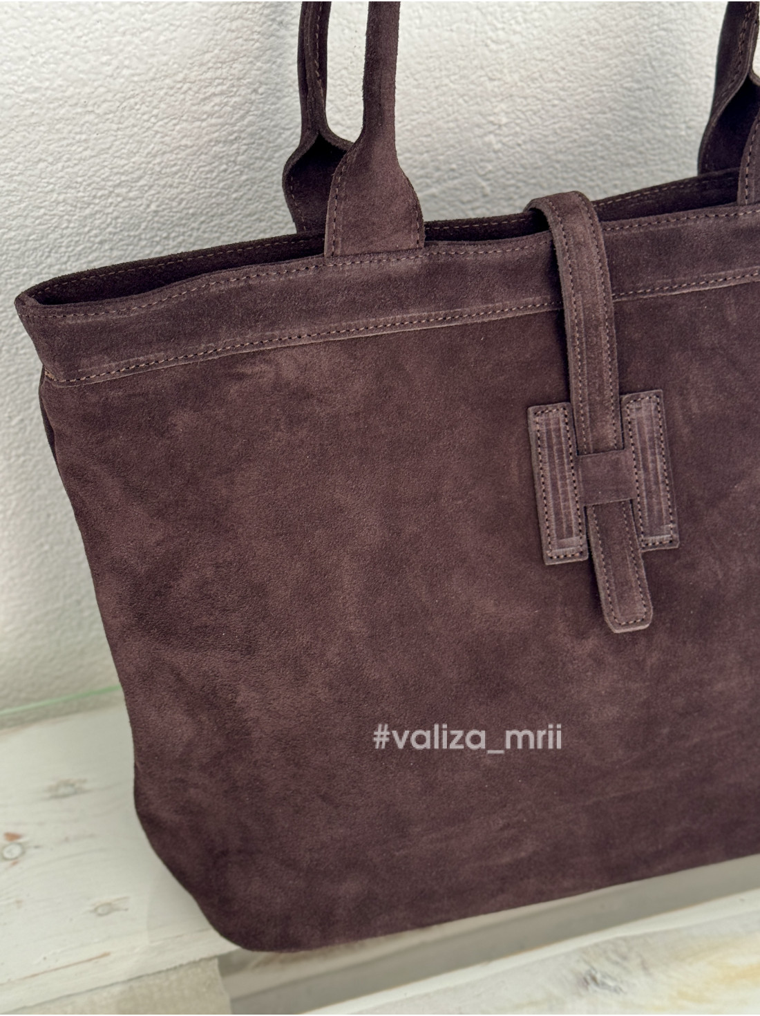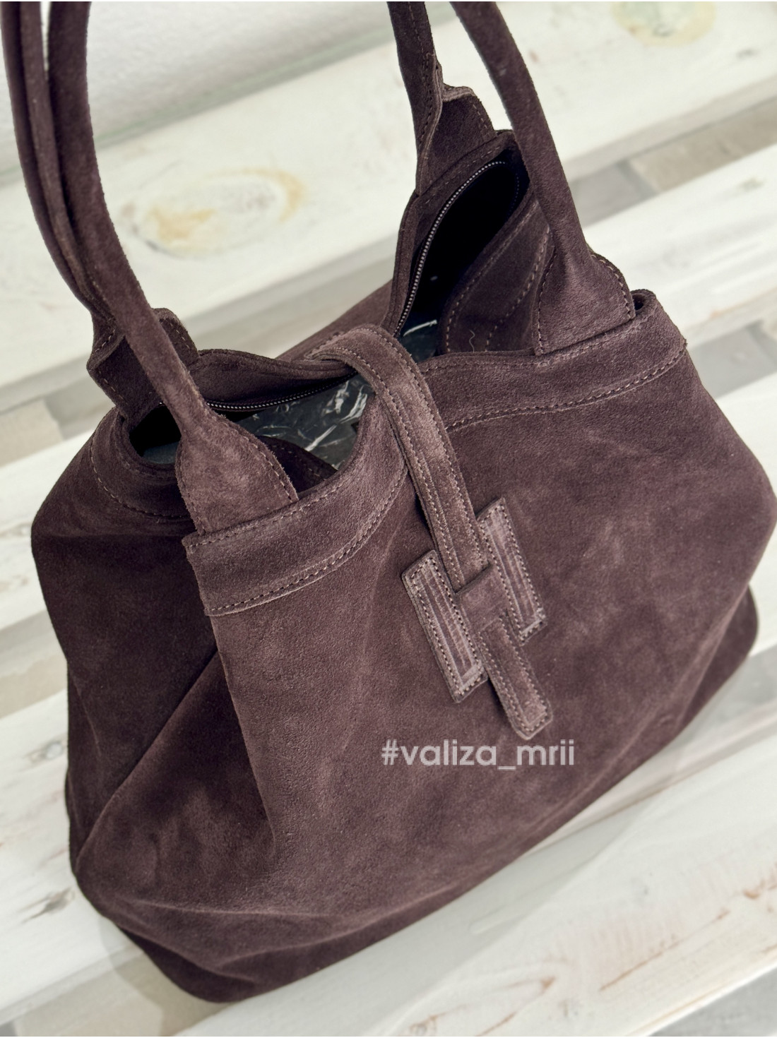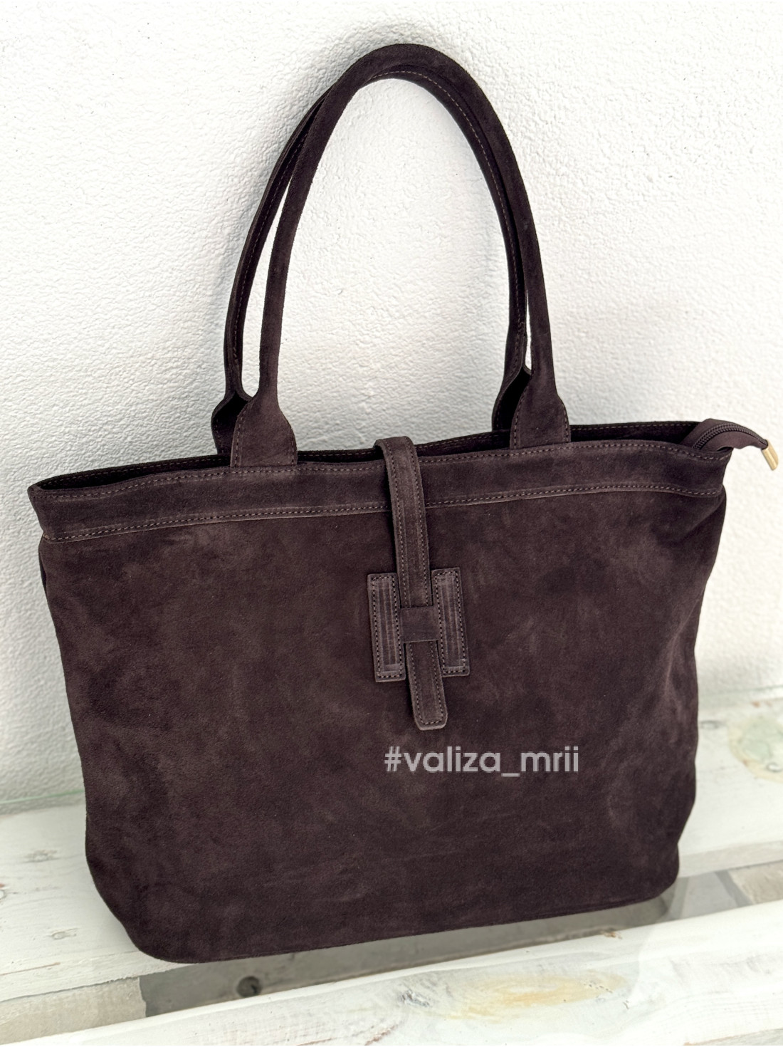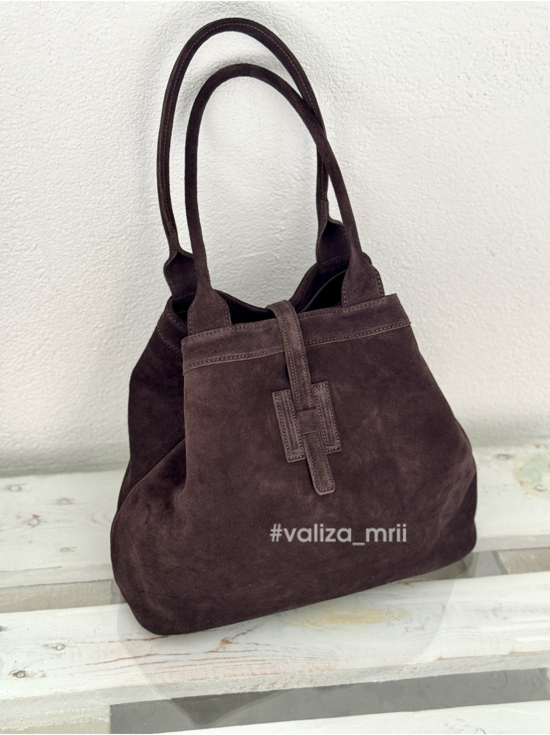 Жіноча сумка-шопер з натуральної замші Virginia Conti 03763 — шоколад