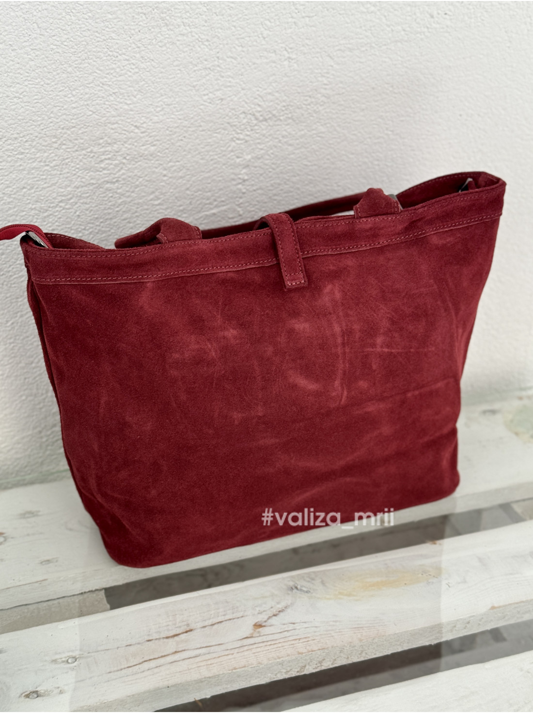 Жіноча сумка-шопер з натуральної замші Virginia Conti 03763 — винний