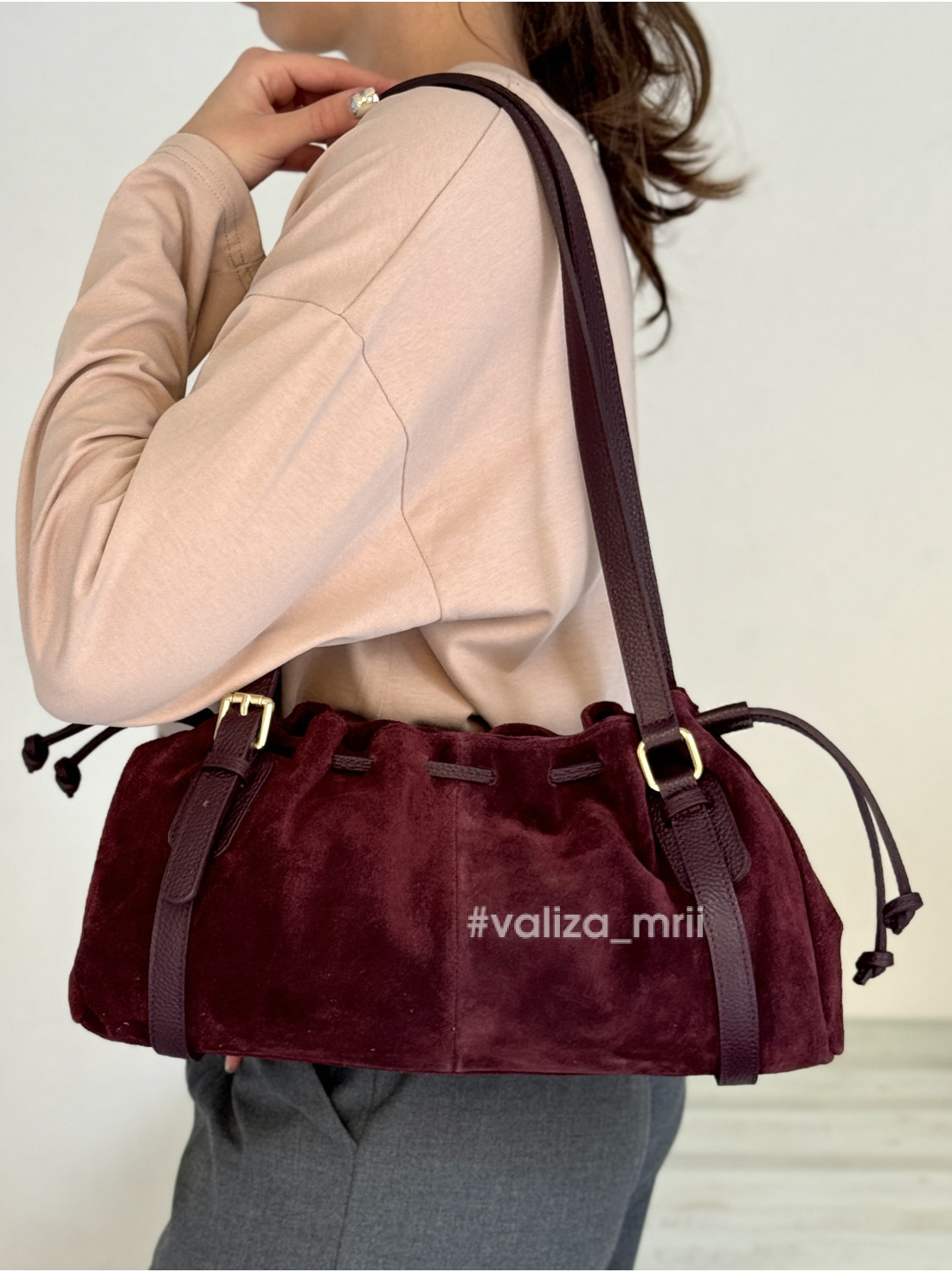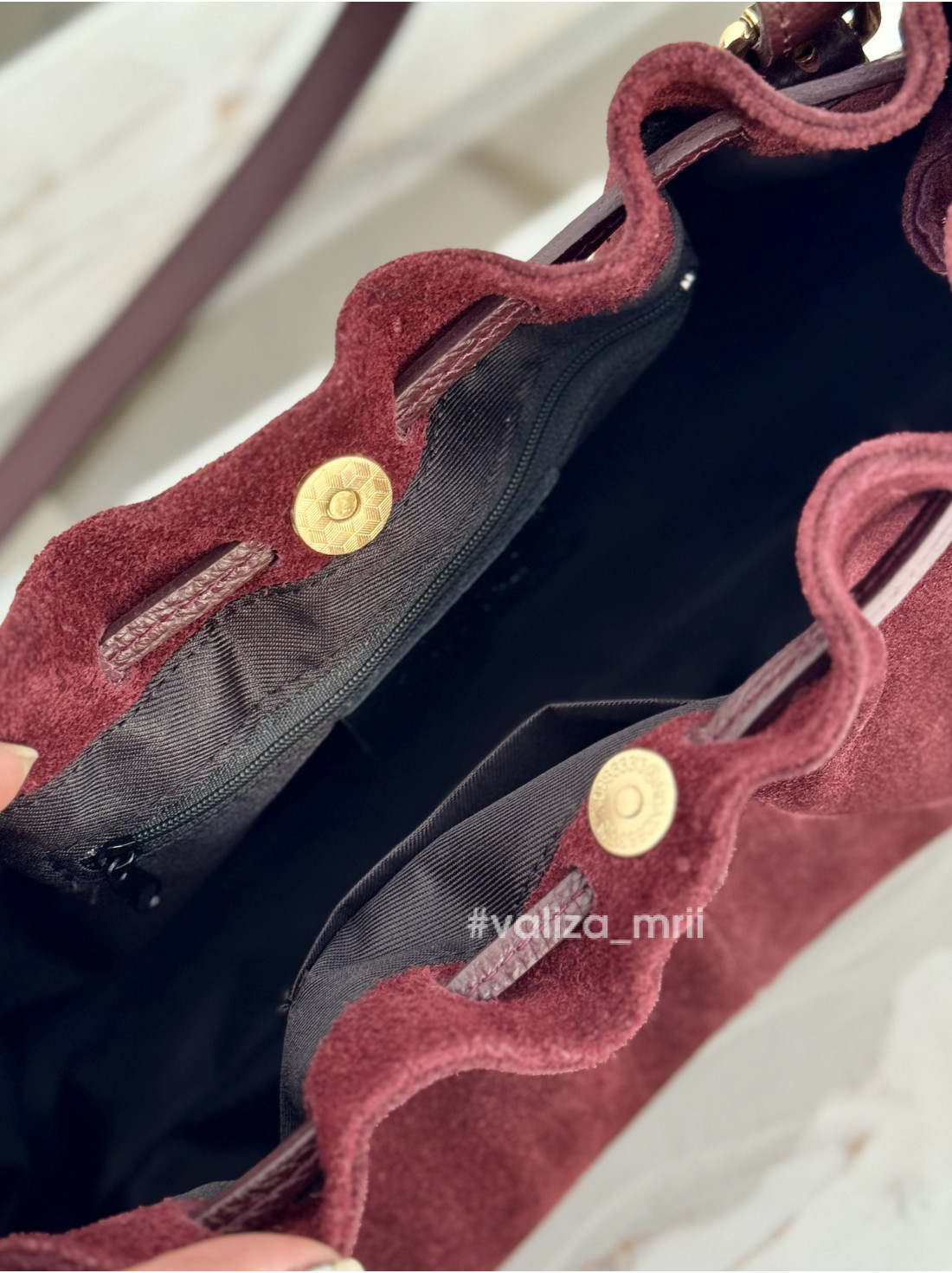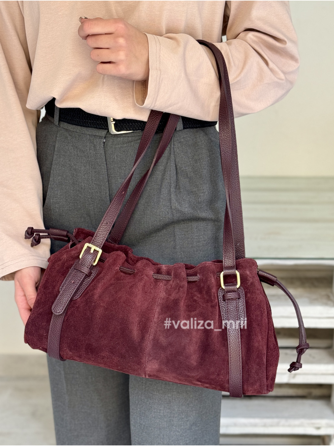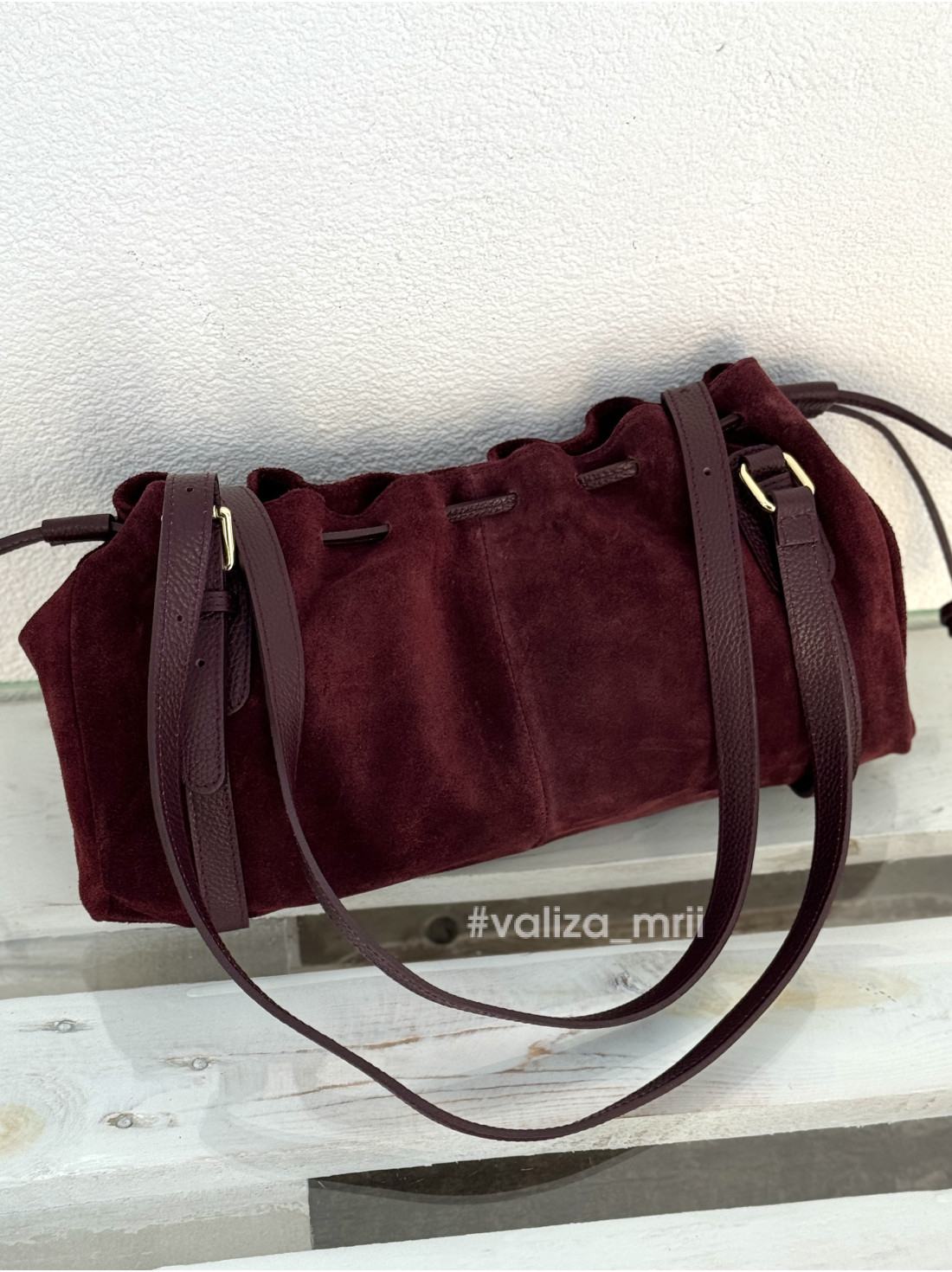 Стильна та містка замшева сумка-шопер від Virginia Conti — ідеальний варіант для сучасної жінки. Виготовлена з м’якої натуральної замші глибокого бордового кольору, ця модель відрізняється лаконічним дизайном, довгими ручками та зручною формою, що чудово підходить для щоденного використання.